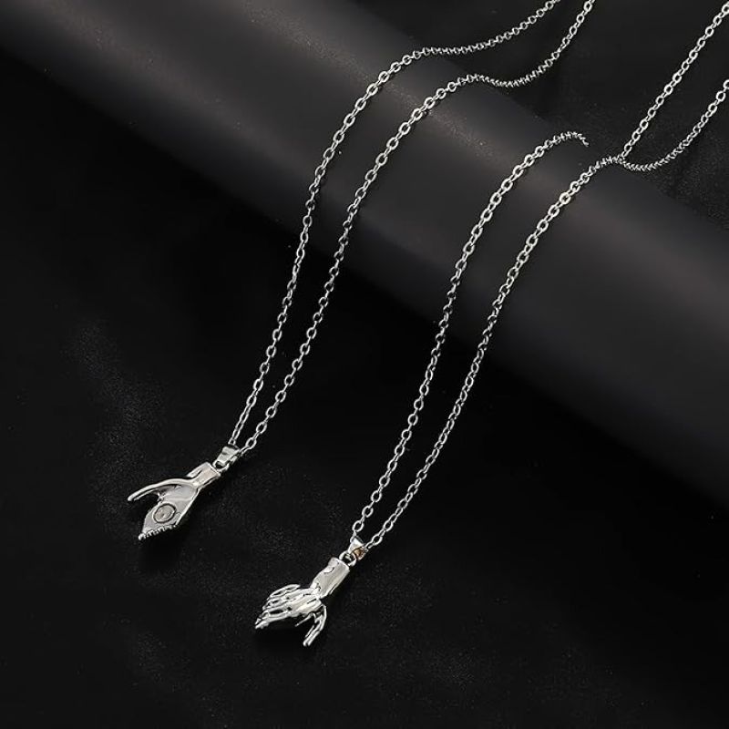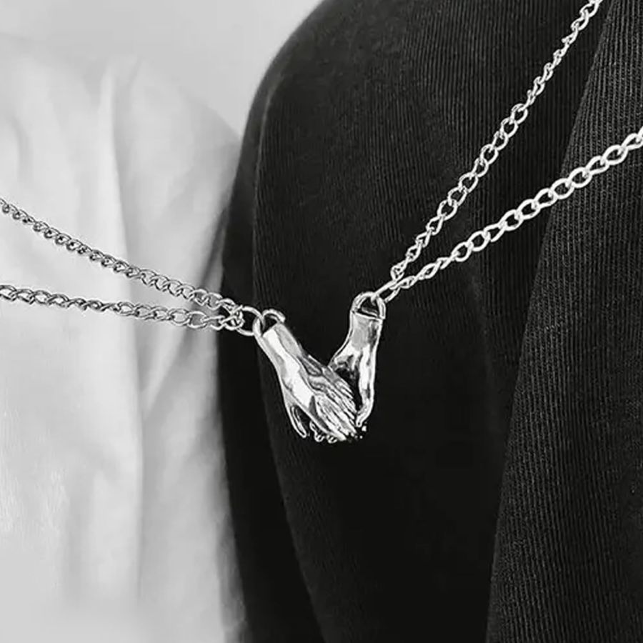 Peora Silver Plated Holding Hand Promise Couple Pendant Chain Necklace Fashion Jewellery Gift for Men & Women