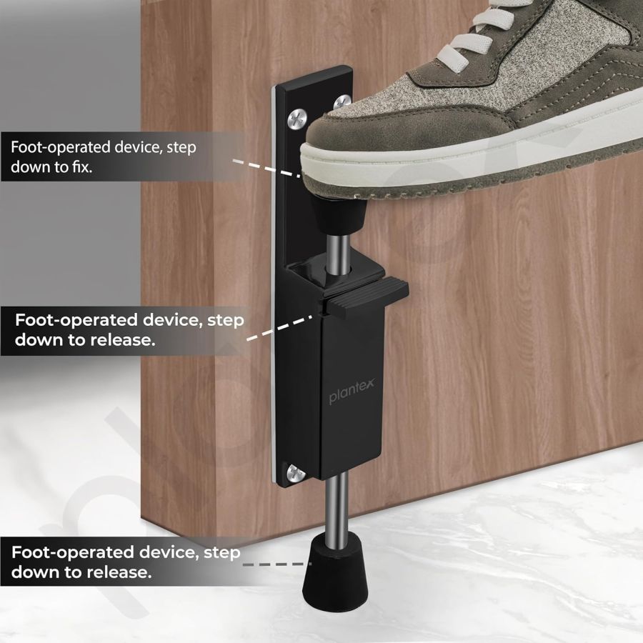 Convenient and long-lasting: These plantex spring-loaded step-on door stops are the most practical door stops because they are simple to press down and release, even with bare feet. They include a wide, soft rubber foot and a spring-loaded plunger throw.