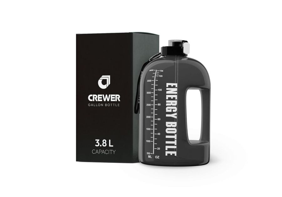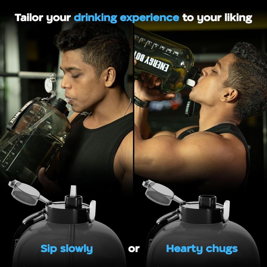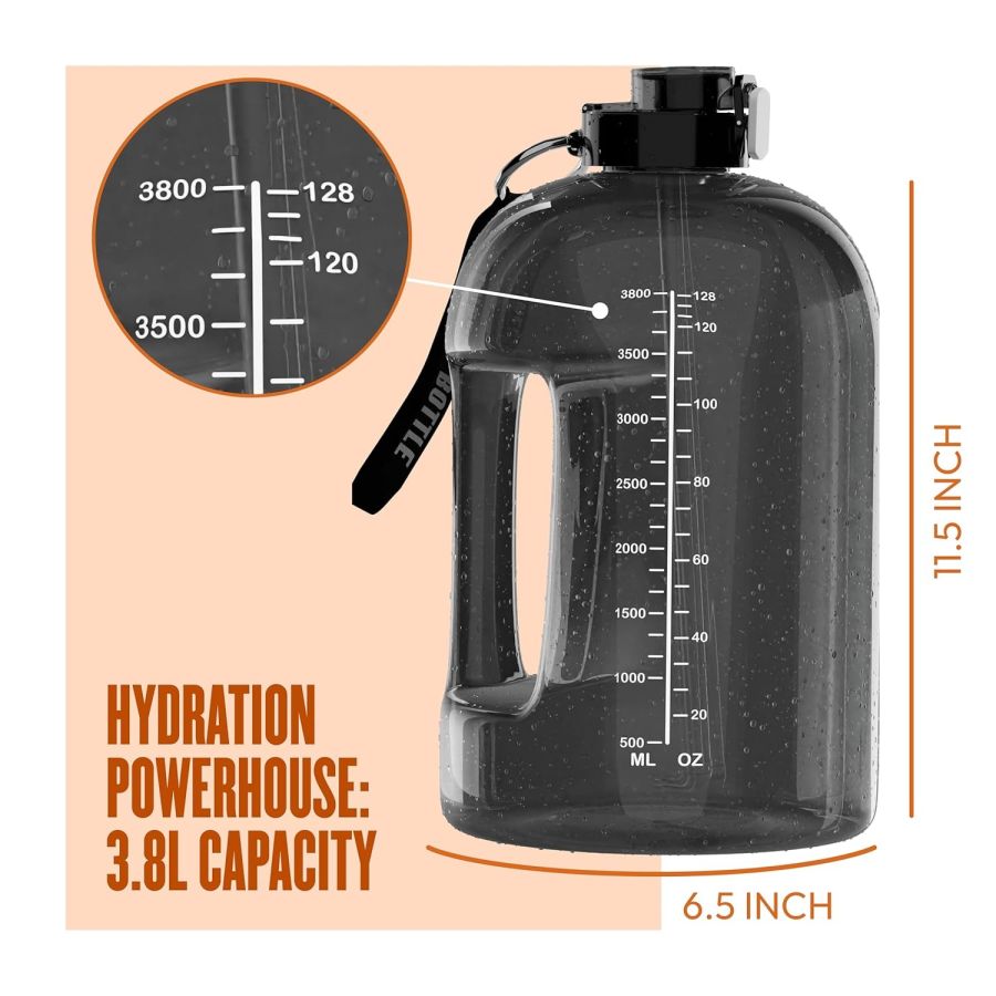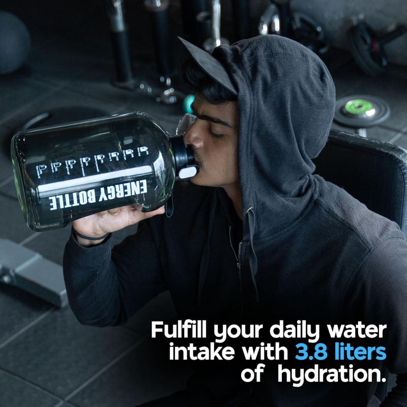 Plastic 3.8 Liter Water Bottle - Leak Proof BPA Free With Sipper, Motivational for Adults, Gallon With Time Marker for Gym, Sports (Grey)