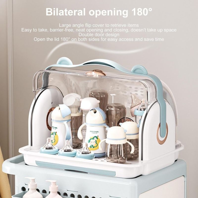 Dustproof Storage: The bottle rack holder for baby can safely store feeding bottles. The transparent sealing cover can protect the cleaned drying rack baby bottle from the entry of external foreign matter, and the 360-degree tight protection gives the baby more sense of security.