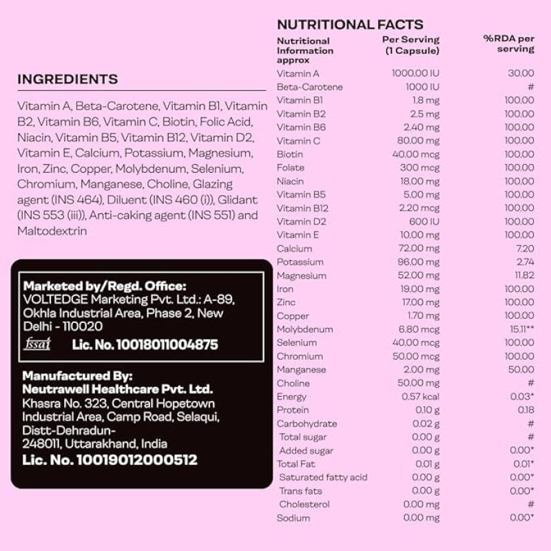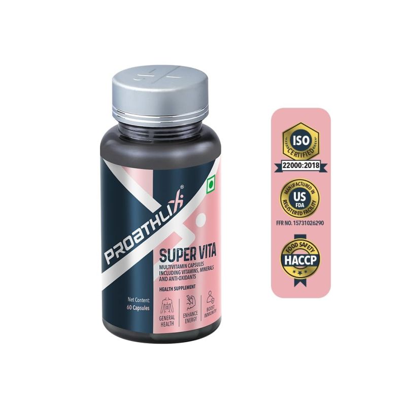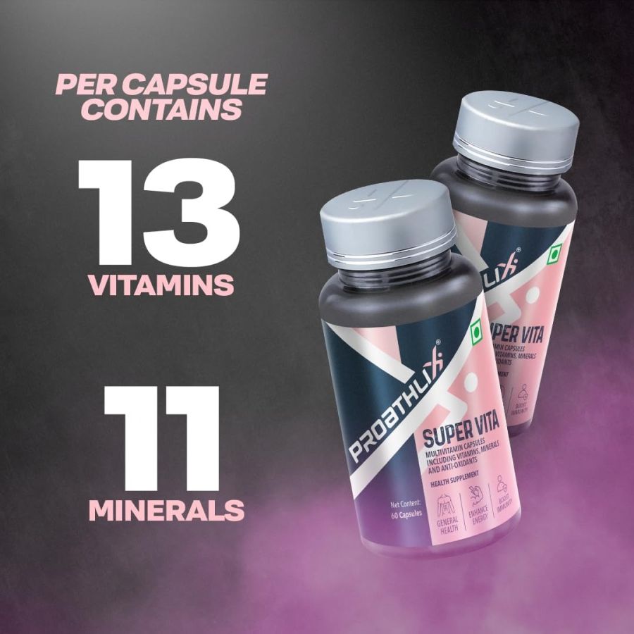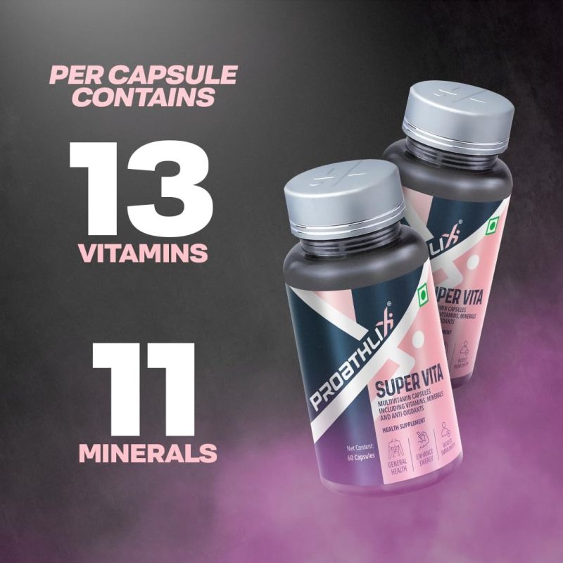 Proathlix Super-Vita Multivitamin Capsules with Vitamin A, Vitamin B1, Vitamin E, Zinc & 60 Capsules, Supports General Health & Boost Immunity