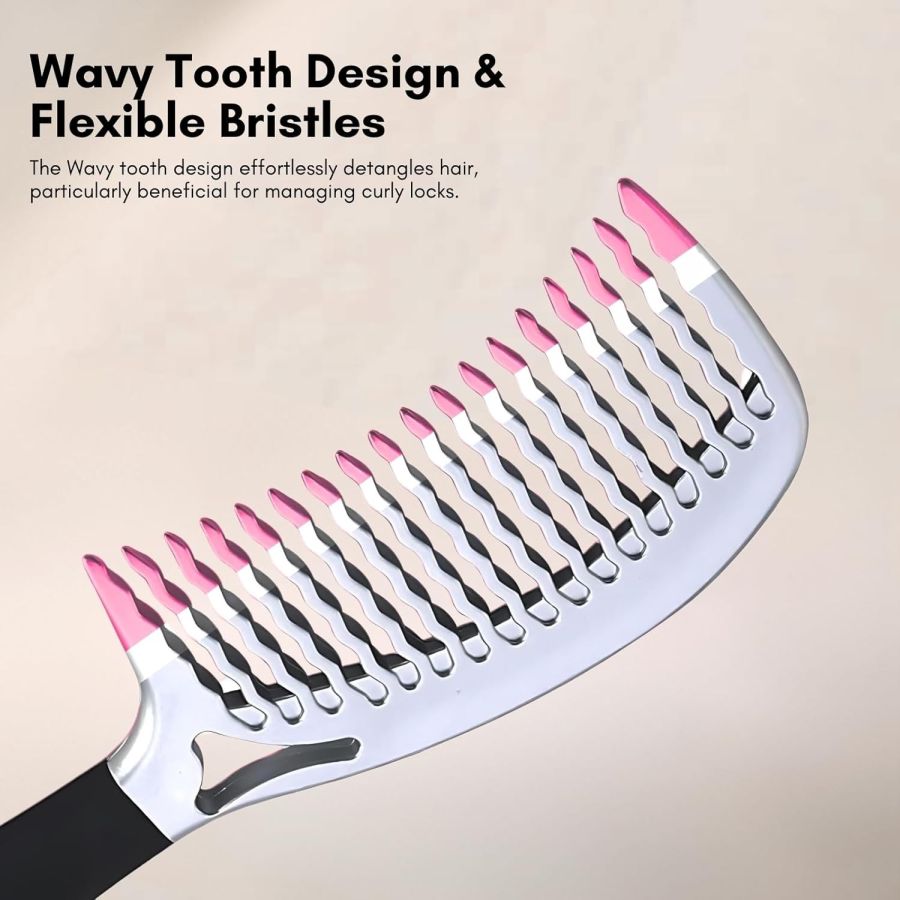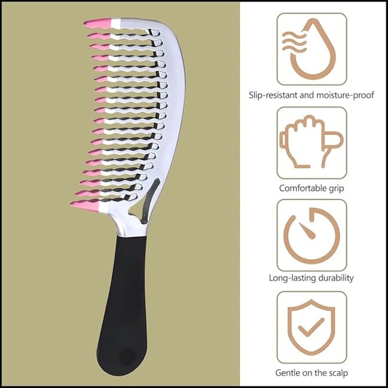 Professional Shower Shampoo Detangling Tangle Buster Hair Comb with Zig Zag Rounded Wide Wavy Tooth for Men and Women_Silver Pink
