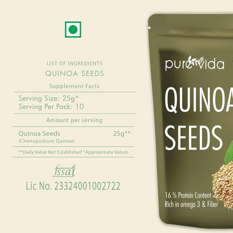 High in Protein & Fiber – Purevida Quinoa is a nutrient-dense superfood packed with plant-based protein, fiber, and essential amino acids, supporting muscle growth and digestion.