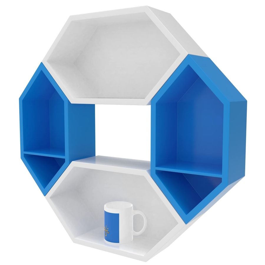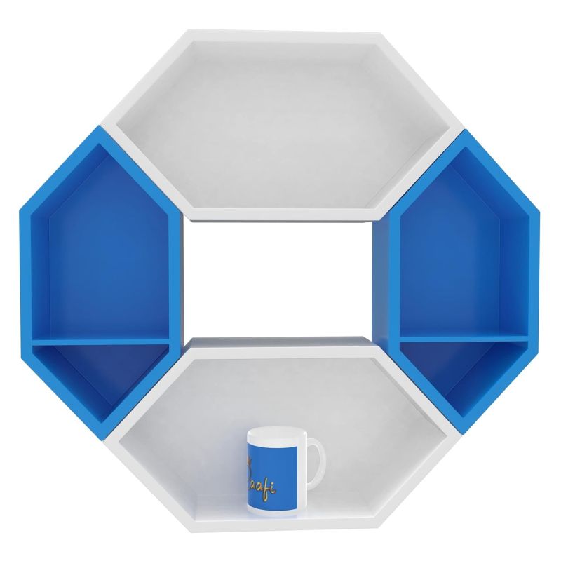 Raafi Wooden Pared Pentagon Floating Wall Shelf with 4 Shelves (Blue & White) (Blue & White)