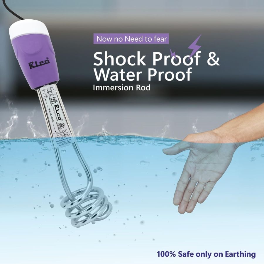 Rico's 1500 Watts Shock-Proof Immersion Rod With Specially Designed Copper Metal & Stainless Steel heating element For Super Fast Uninterrupted Heating and You Are Set For A Warm Bath