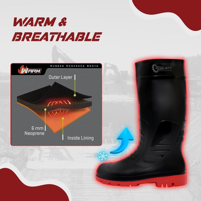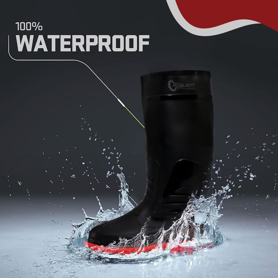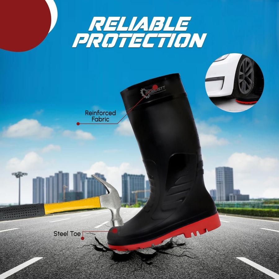 Perfect Fit: Robustt gum boots are committed to ensuring wearer comfort by employing an ergonomic design and incorporating carefully selected lining materials. The Safety Shoes features cushioned insoles and padding, these safety shoes provide ample support and shock absorption to alleviate strain.