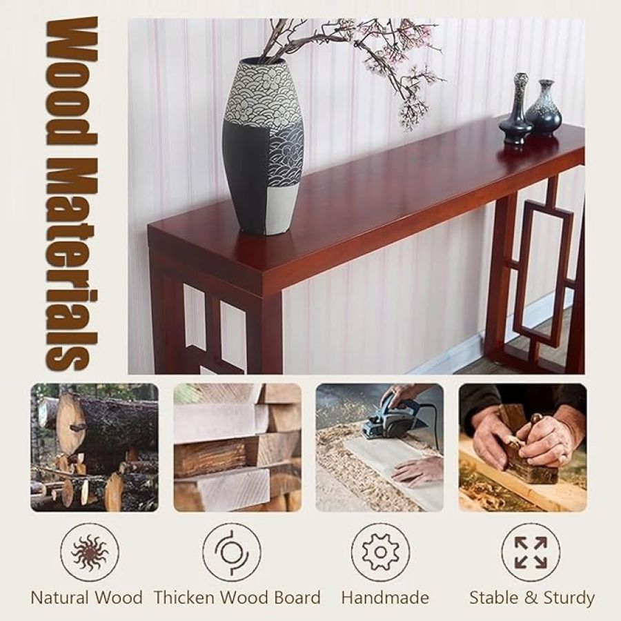 RuPS Wooden Console Table Modern Solid Wood Entryway Table for Living Room, Hallway or Office Slim Designs (Dark Brown, 180 x 30 x 75)
