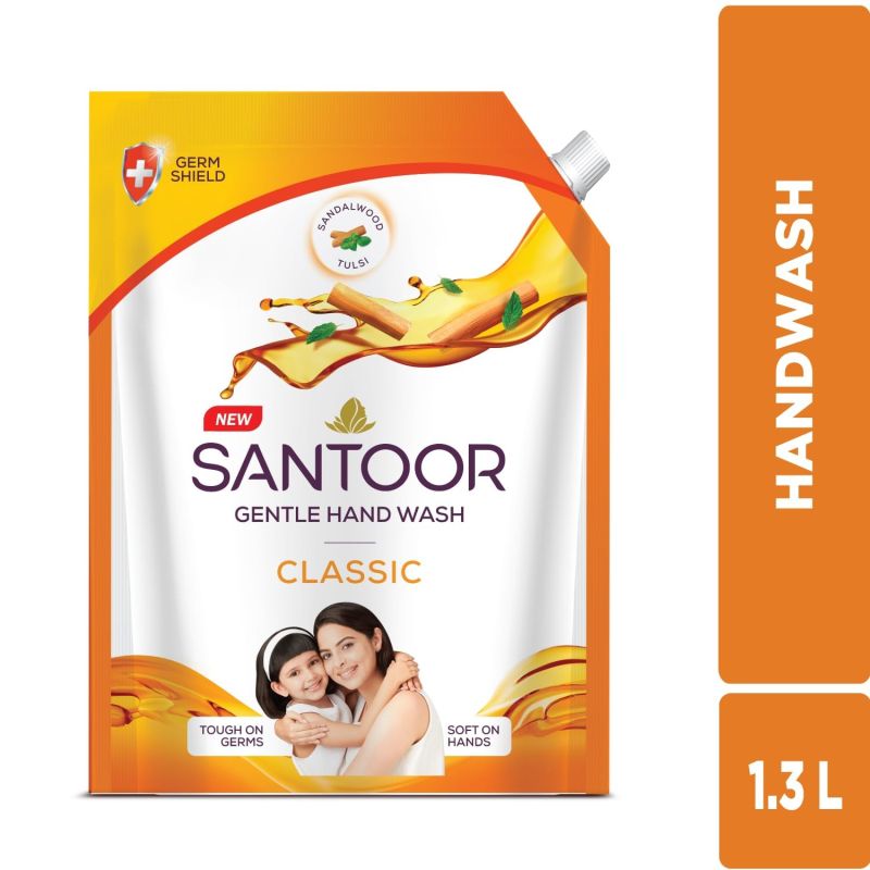 Santoor Classic Gentle Hand Wash with Natural goodness of Sandalwood & Tulsi, 1300ml