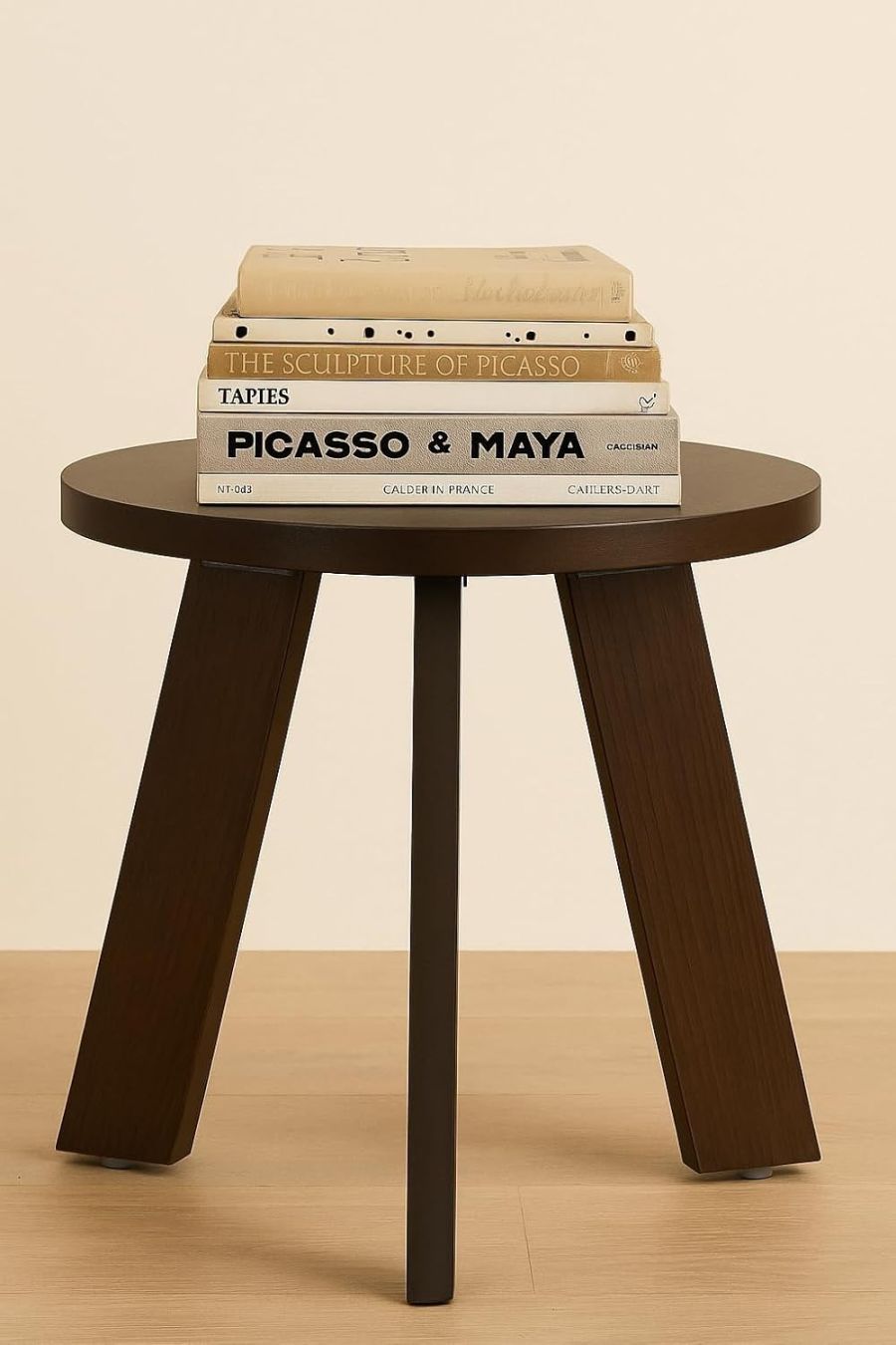 SBF Furniture Mini Flower Side Table, 30 cm, Matte Finish, Modern Minimalist Design, 3 Angled Legs (Accasiya Brown)