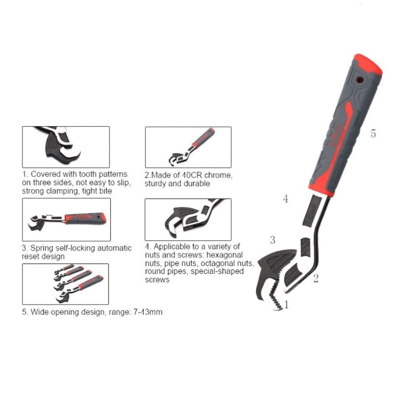 Self Adjusting Locking Wrench Multifunctional Universal Adjustable Pipe Wrench (6'' Inches)