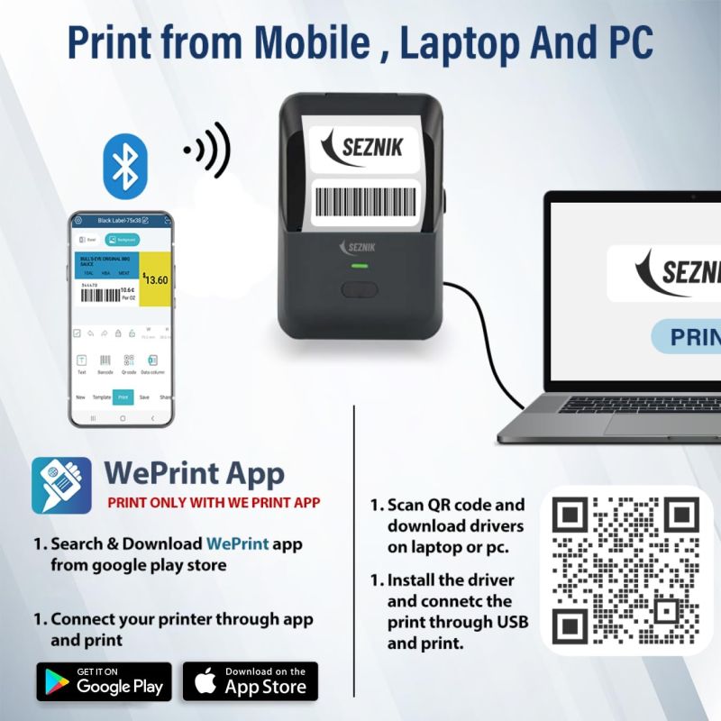 ???????????????? ???????????????????????????????????? ???????????????????????????? ????????????????????????????:This 58 mm mobile Bluetooth label printer connects seamlessly to any smartphone, tablet, or laptop via "WE PRINT" app. You can print labels, and stickers directly from your mobile device using thermal bluetooth printer. Compatible with Windows only.