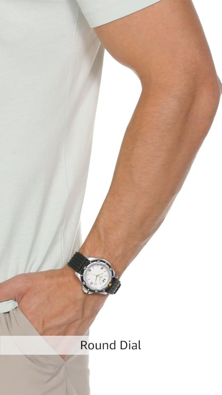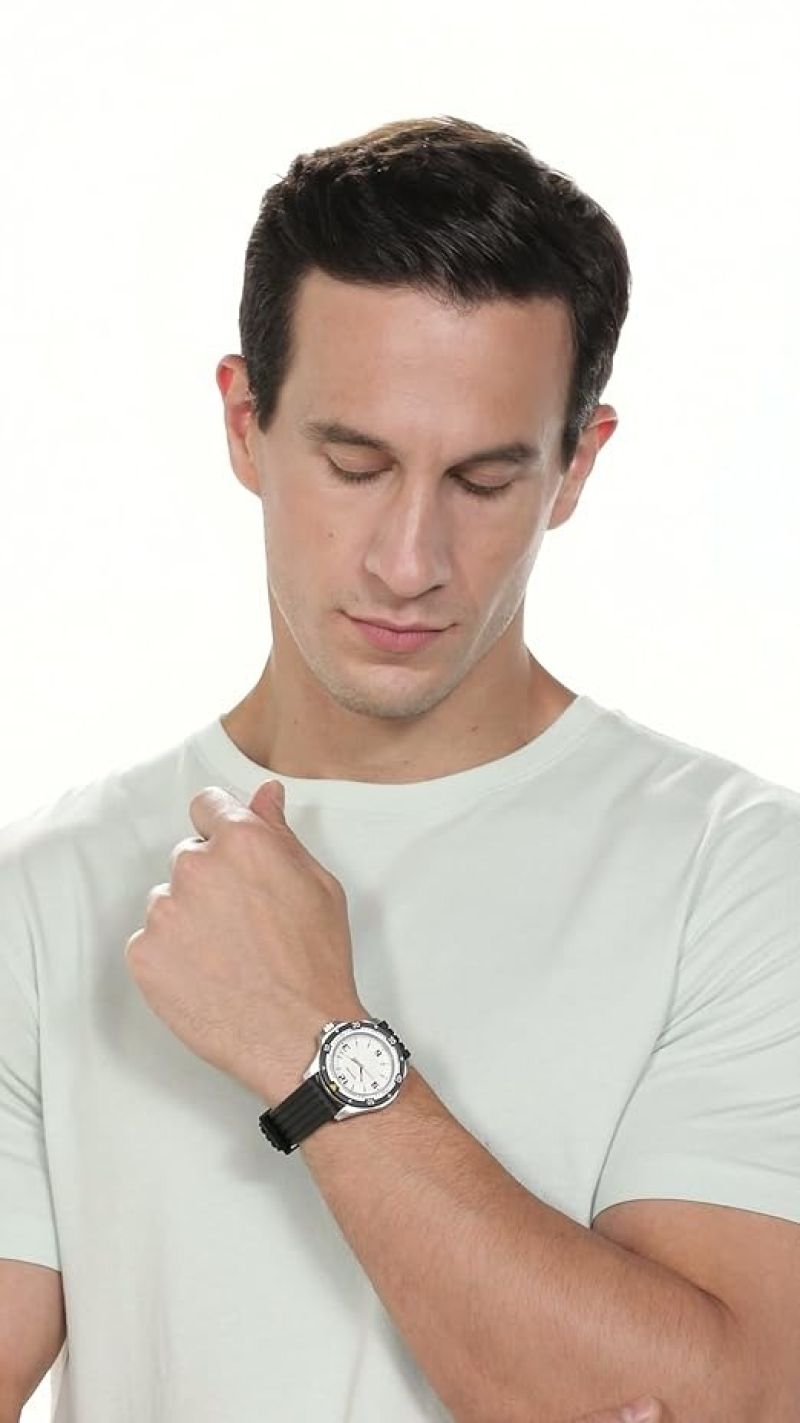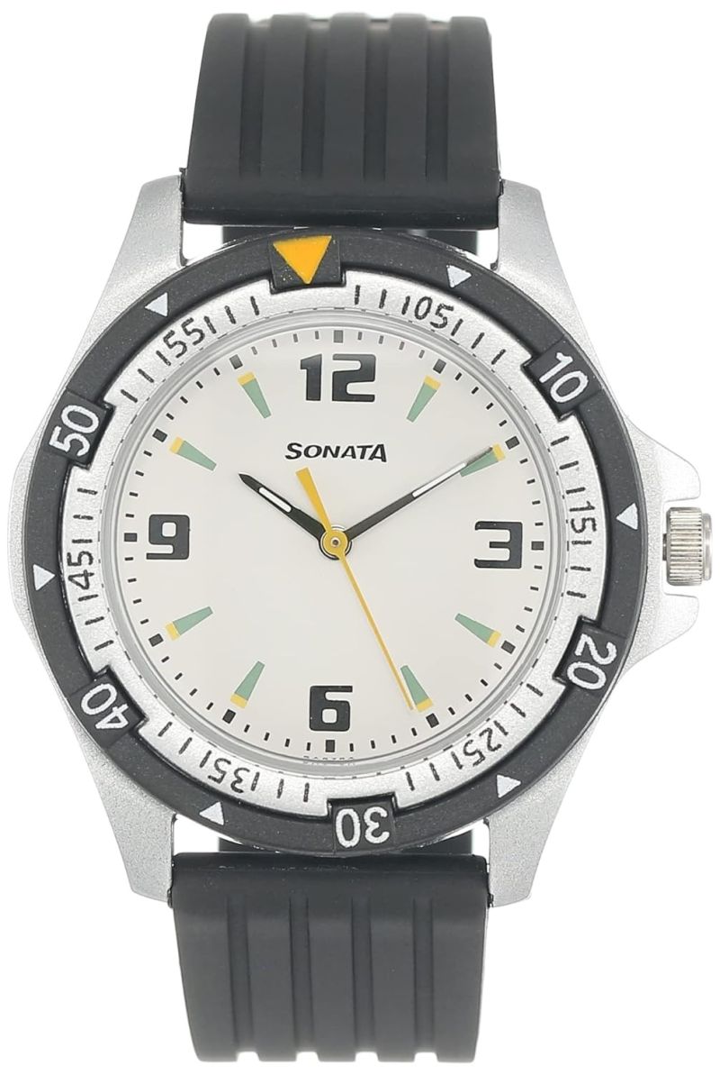 SF Quartz Analog White Dial Black Plastic Strap Watch for Men- NT7930PP01
