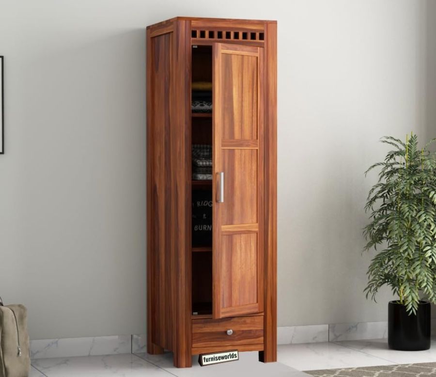 Sheesham Wood Wardrobe with 1 Drawer and 4 Shelves Storage for Bedroom Wooden Almirah for Clothes for Living Room Bedroom Home, Solid Wood Furniture (Honey)