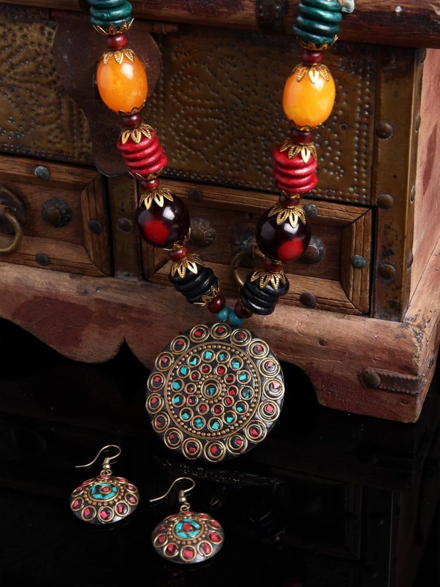 Shining Diva Fashion Latest Stylish Traditional Tibetan Pendant Necklace Jewellery Set for Women