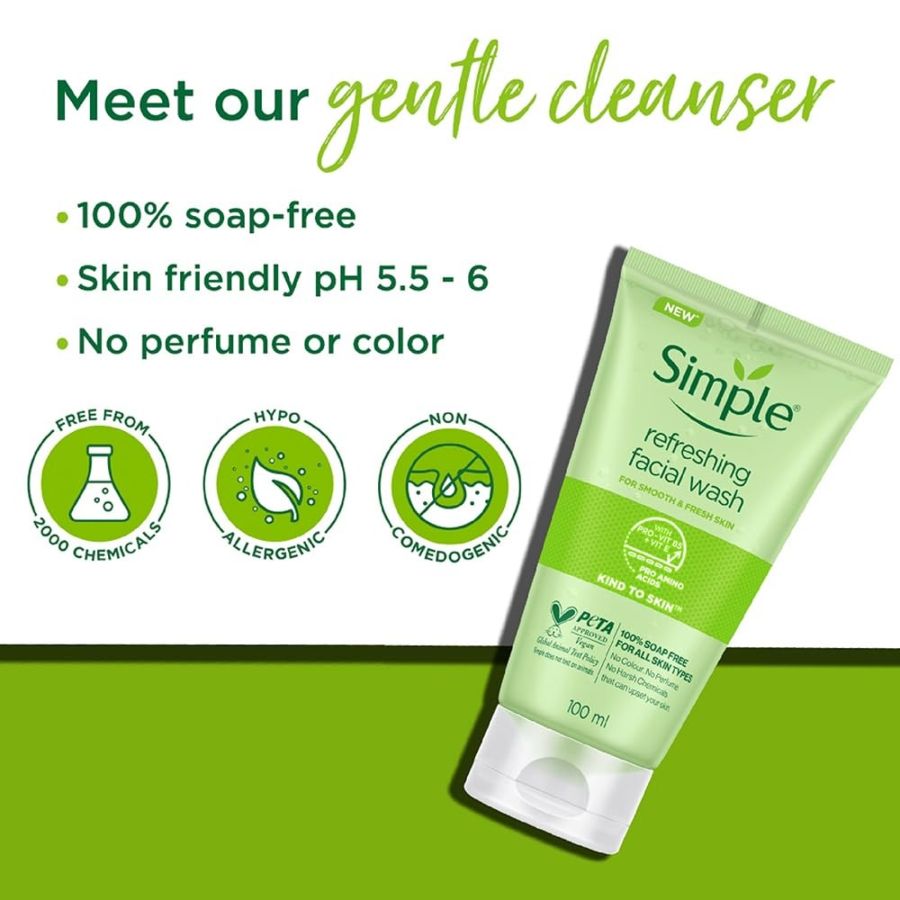Simple Kind To Skin Refreshing Facial Wash 150 ml | 100% Soap-Free Facewash that doesn't dry out your skin| For All Skin Types