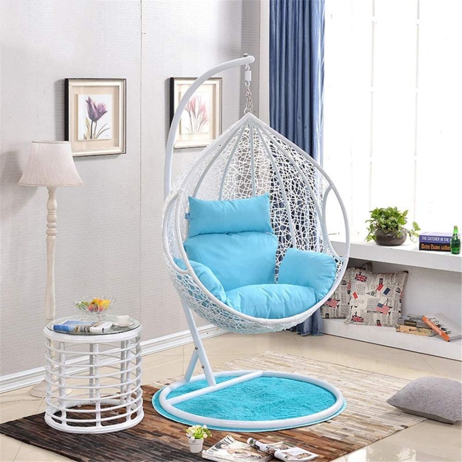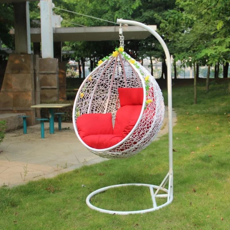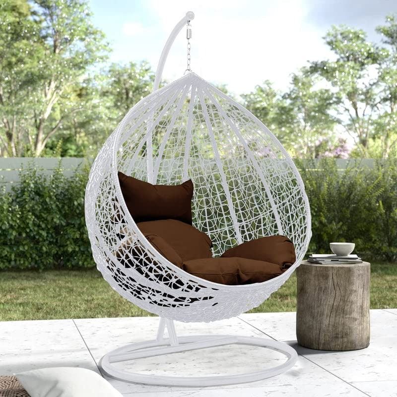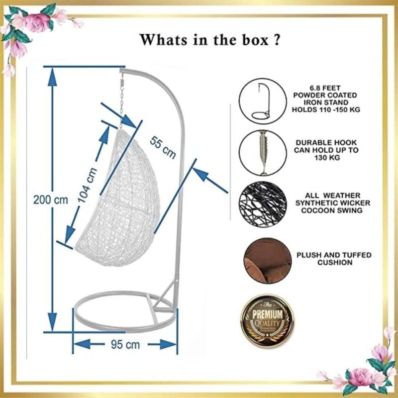 Single Seater Swing Chair with Stand & Cushion Outdoor Indoor Balcony Garden Patio,Powder Coated Frame,UV Protected Wicker,Premium Cushion AD-20