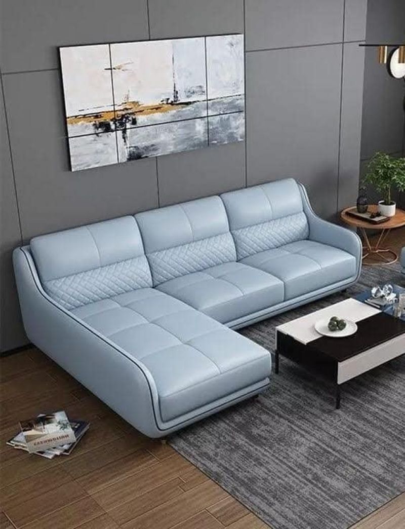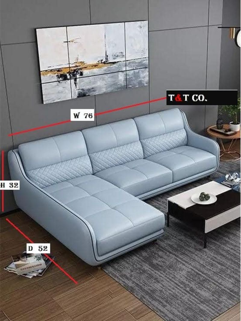 Sofa Set T&T Co. Unique Design Luxury Imperia Collection Quilting Back with Upholstered Soft Touch Premium Leatherette (Light Blue, 4 Seater Sofa)