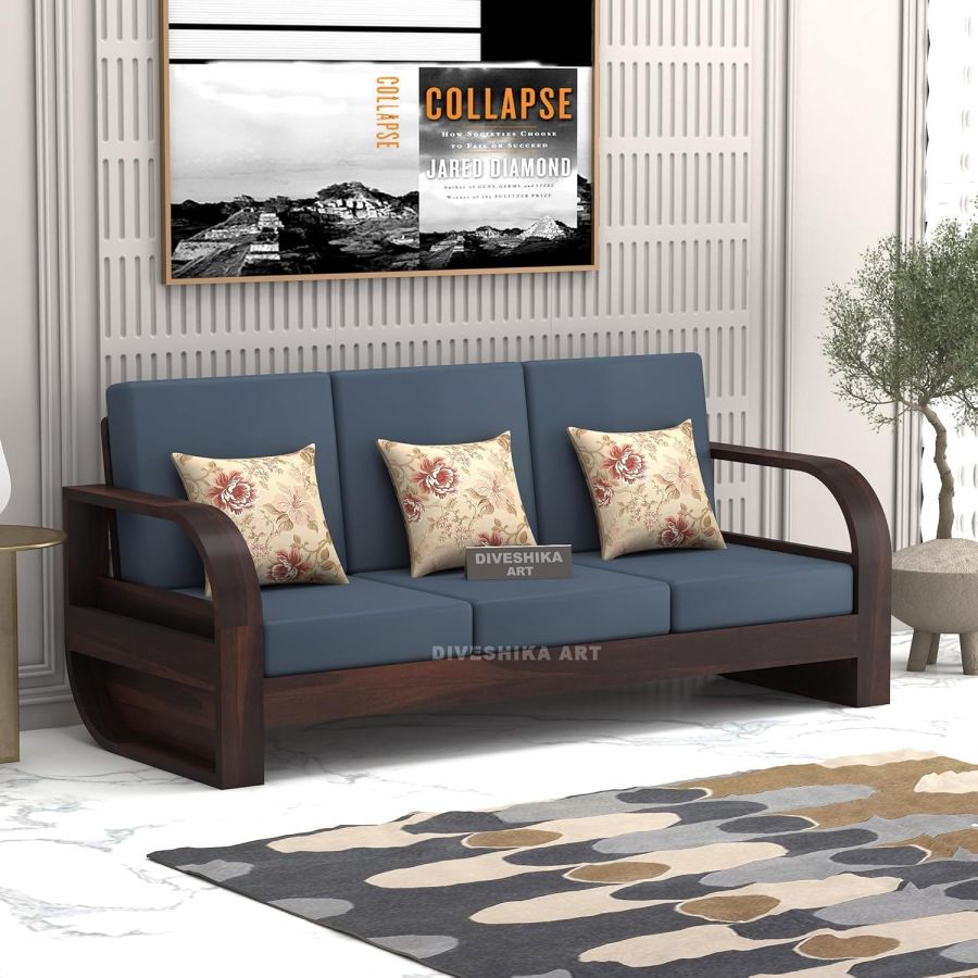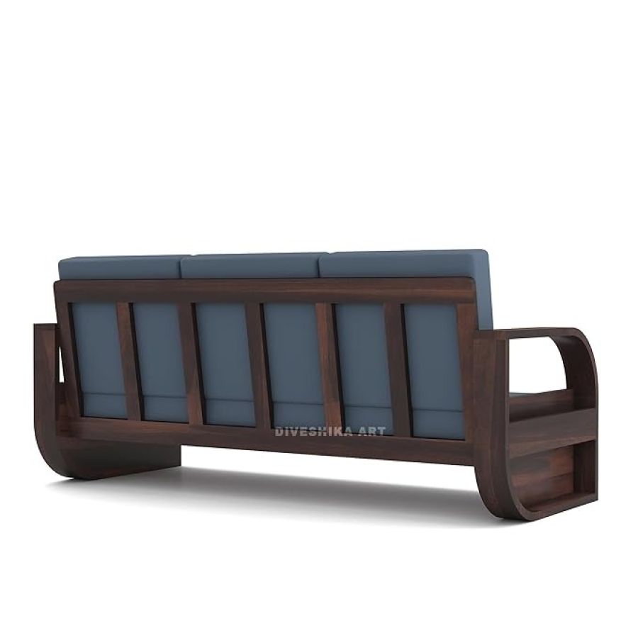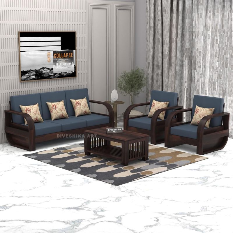 Solid Sheesham Wood 5 Seater Sofa Set for Living Room - with Side Storage Newspaper Holder - Wooden Sofa Set 5 Seater for Home & Office Furniture (Walnut, 5 Seater)