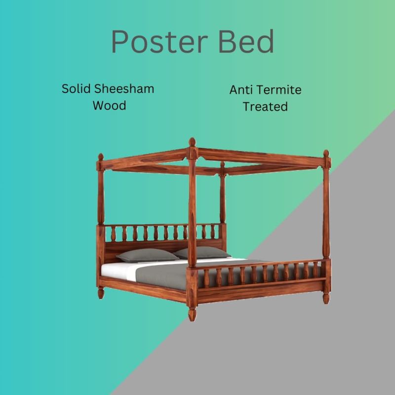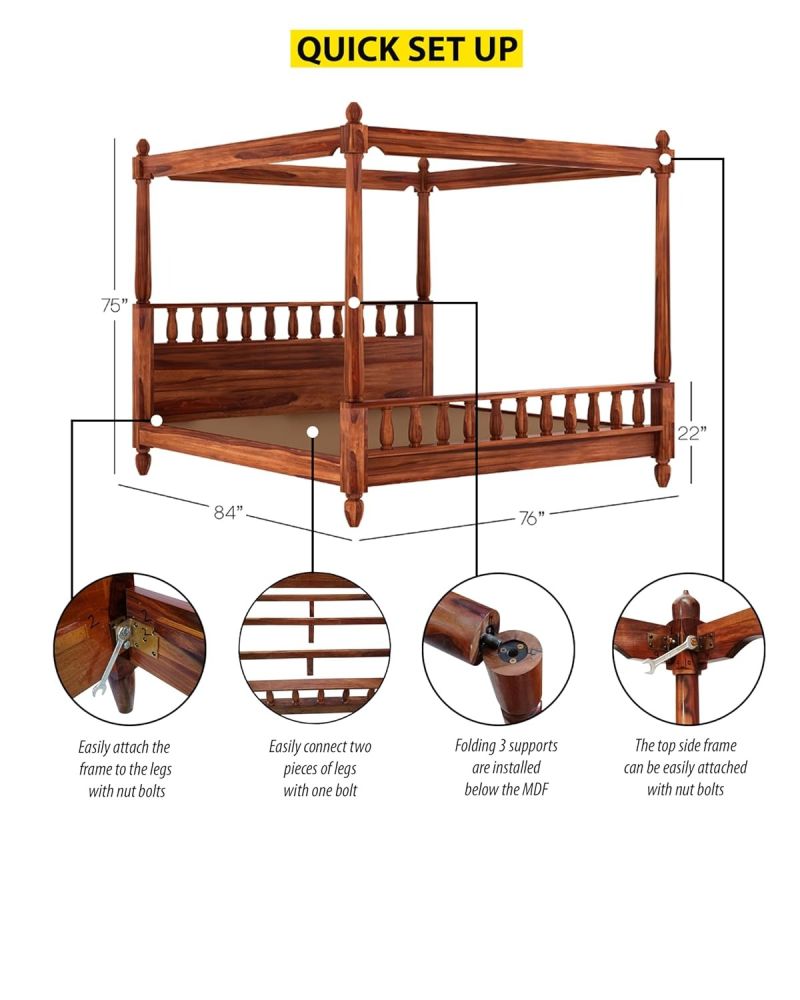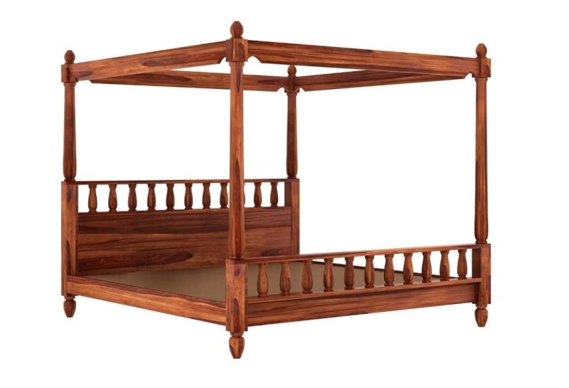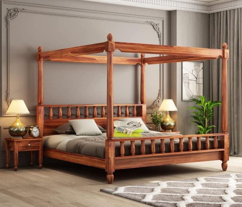 Solid Wood Sheesham Bed King Size Poster Bed Wooden Double Bed Cot Bed Furniture for Bedroom Home and Hotel Sheesham (Honey Finish) 1 Year Warrenty