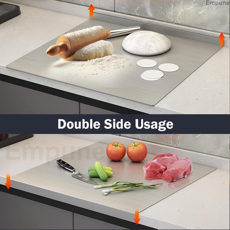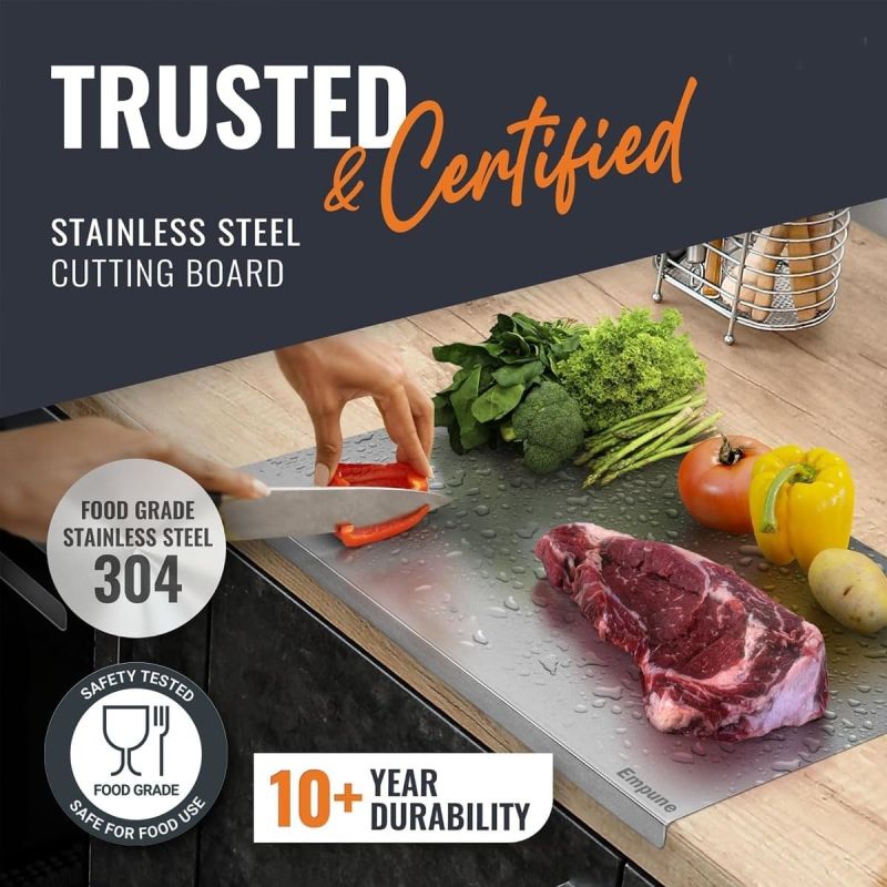 Premium 304 Stainless Steel Construction: Made from high-quality 304 stainless steel, this chopping board is highly durable, rust-proof, and designed for long-lasting use in the kitchen.