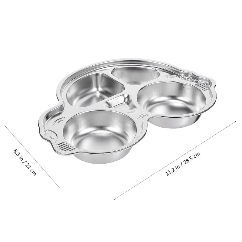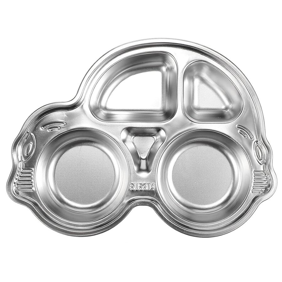 Stainless Steel Divided Meal Plate Tray-3 Compartments Dinner Dish for Baby- Toddler- Kids Eating Food- Car Shape
