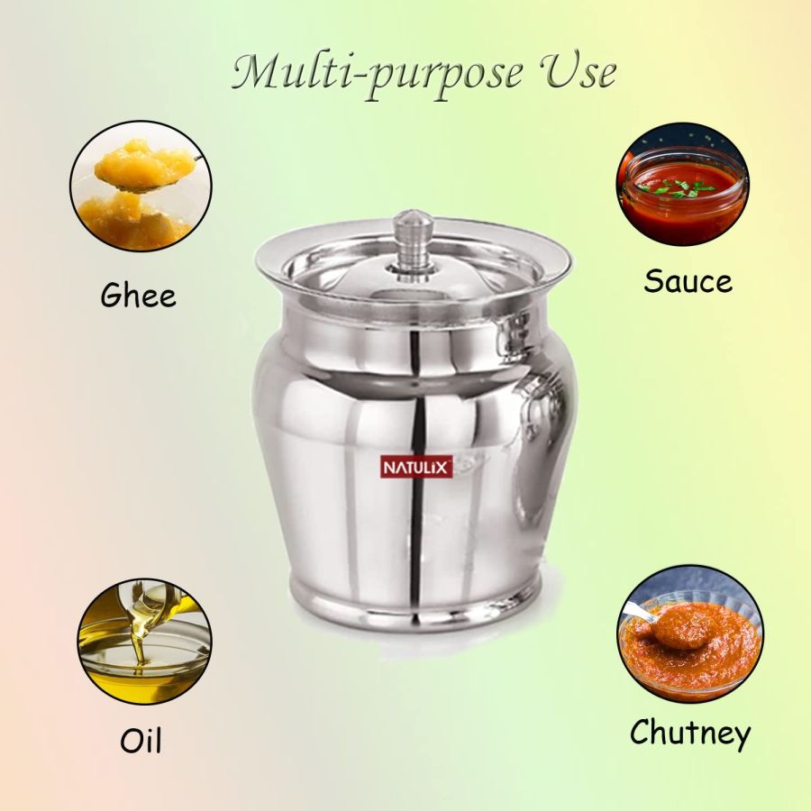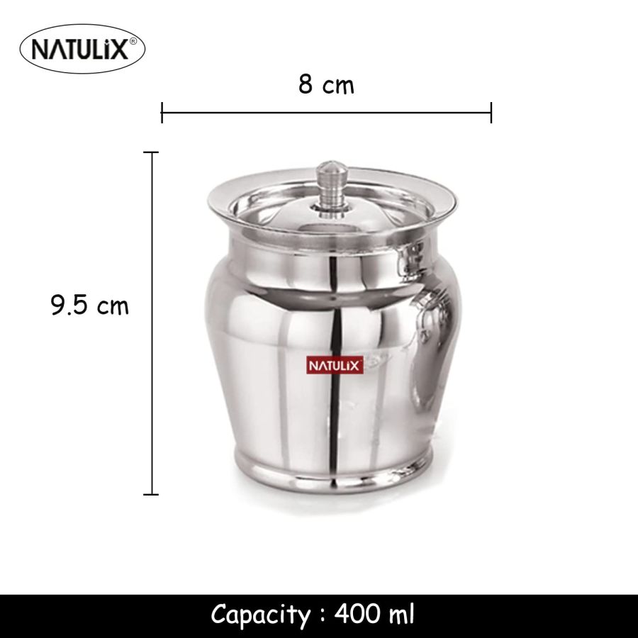 Stainless Steel Ghee Pot | Oil Pot | Ghee Pot with Spoon and Lid | 400ml | Silver | 400ml | Pack of 2