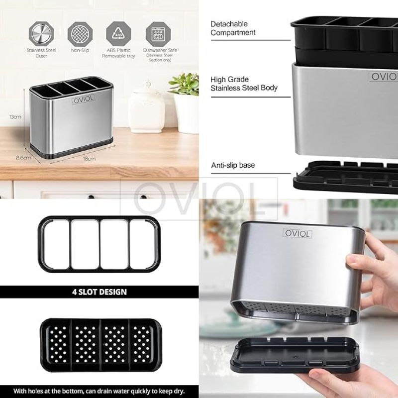 Non-Slip & Stable Base The non-slip bottom keeps this cutlery holder securely in place, even on wet or oily surfaces. Whether you’re using it as a spoon holder for kitchen counter top or near the sink, this sturdy base ensures no tipping or sliding.