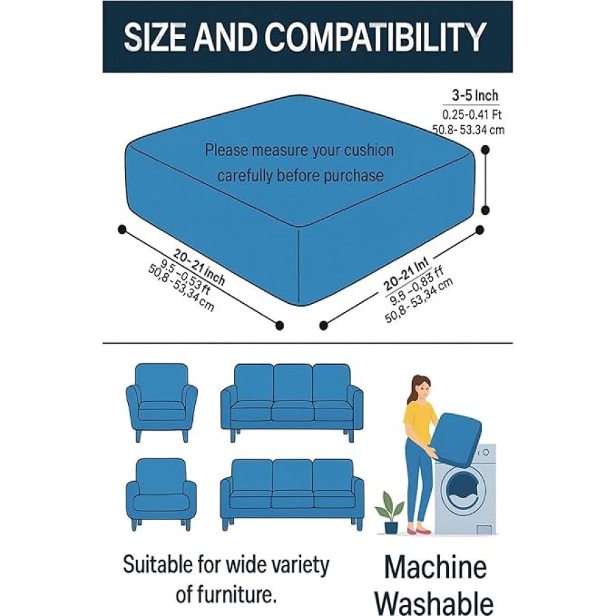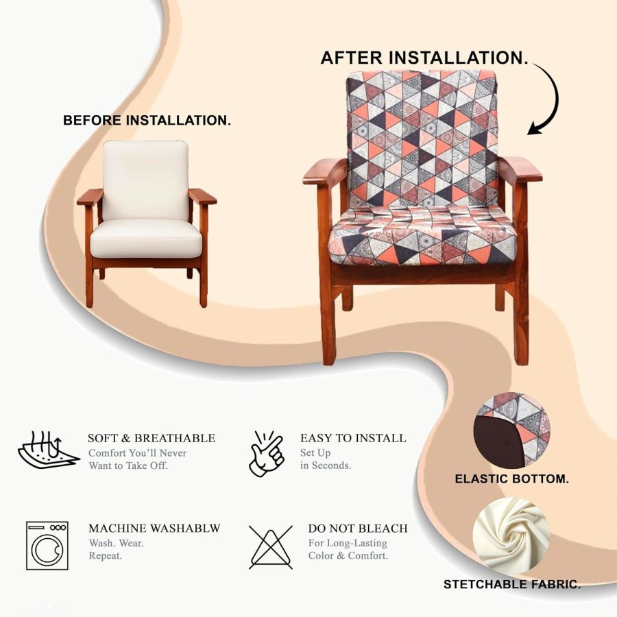 STITCHNEST Polycotton Stretchable Printed Solid Sofa Slipcovers, Wooden Sofa Seat Cover, Sofa Back Cushion Covers (Pack of 5)