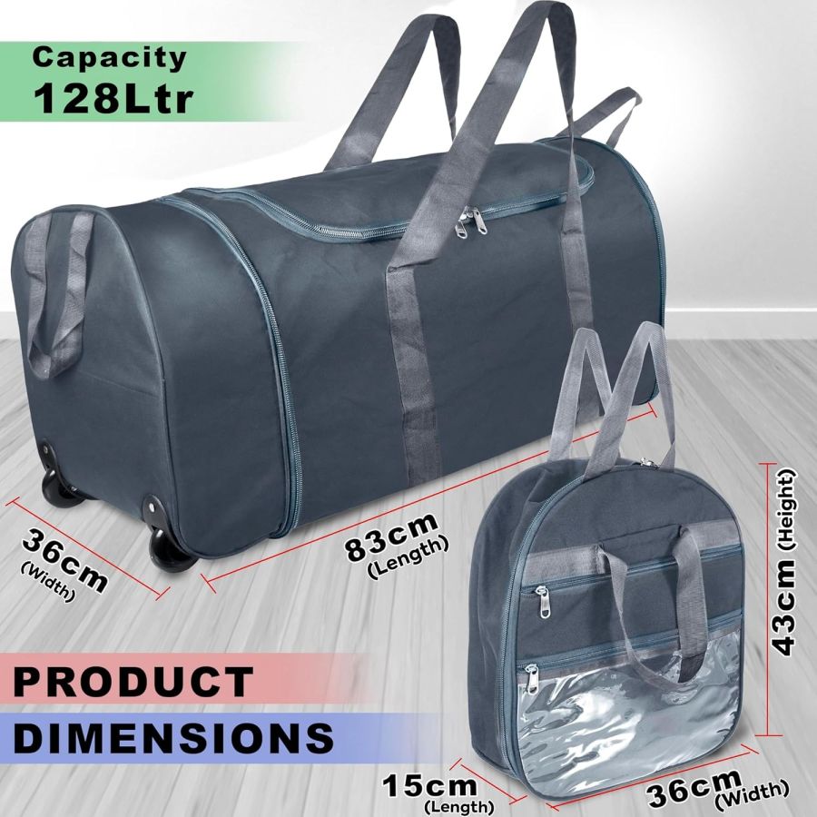 Storite Nylon 83 Cm Extra Large Travel Duffle Bag, Luggage Bag Covertible Trolley Duffel Storage Bag with 2 Wheels & Pull Handle - (Grey, 83x36cm)