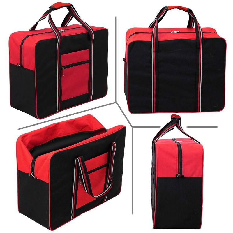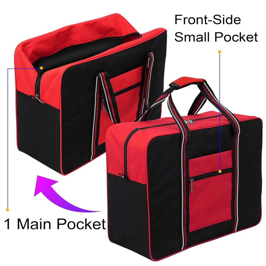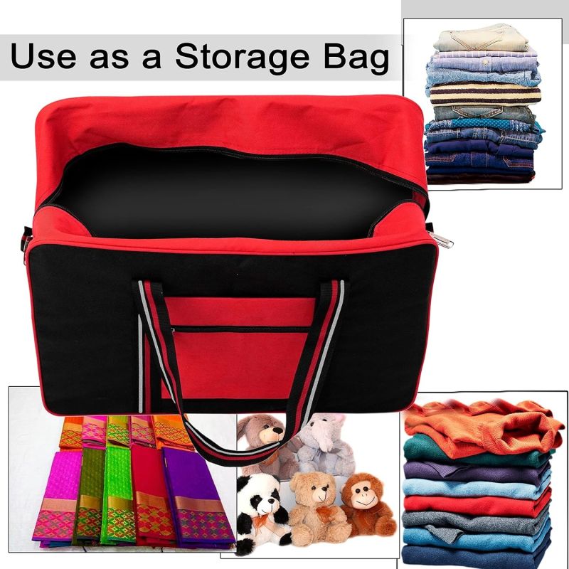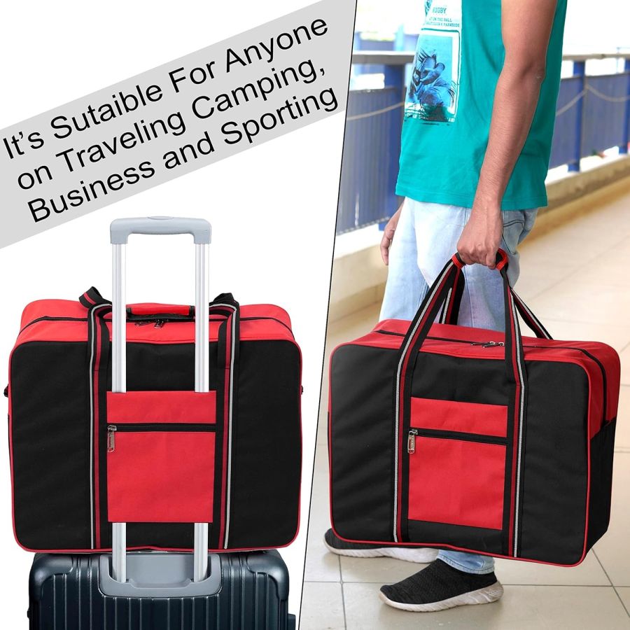 Storite Nylon Large Foldable Travel Duffle Bag for Women Weekender Carry On Luggage Storage Handbag with Carry Handle (Red Black)