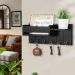DUAL STORAGE SHELVES: Stay organized with dual built-in shelves above the hooks. The spacious design lets you store mail, wallets, sunglasses, or plants beside your key stand, offering multifunctional key organiser use. As a wooden key holder for home, it helps you keep everything in one place while maintaining a chic decorative appeal