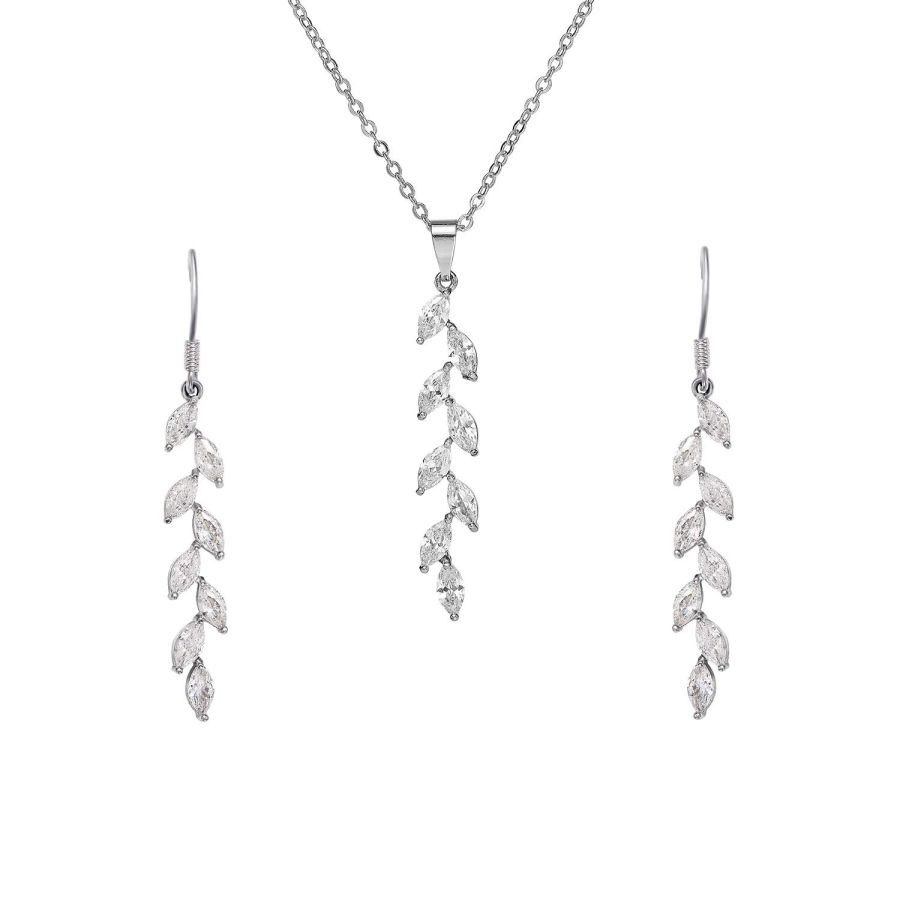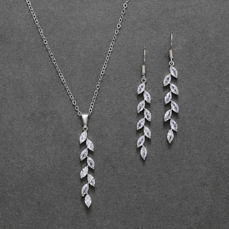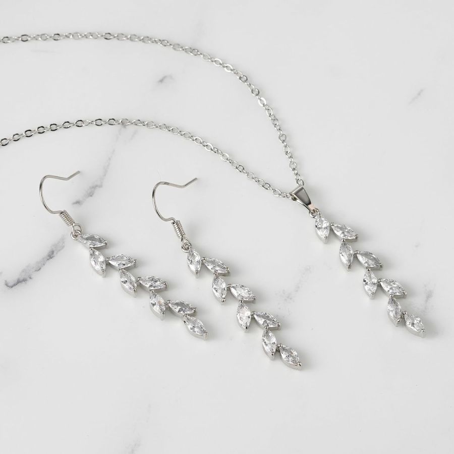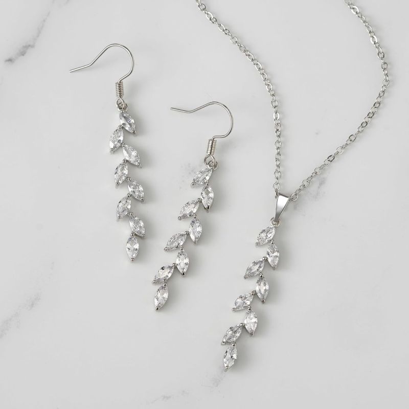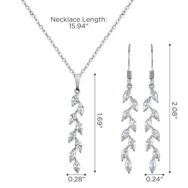 SWEETV Wedding Jewelry Sets for Brides Birdesmaid, Cubic Zirconia Marquise Bridal Necklace Earrings Set for Women, Prom Costume Wedding Jewelry Gifts, Silver