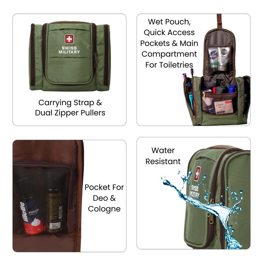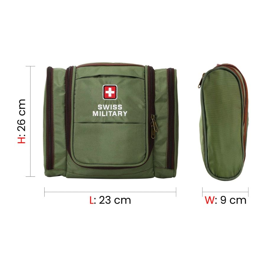 Swiss Military Unisex 5L Water-Resistant Toiletry Bag for Travel with Multiple Compartments, Quick Access Pocket, Durable Zippers, Organizer for Toiletries, Makeup and Essentials Pouch-Green