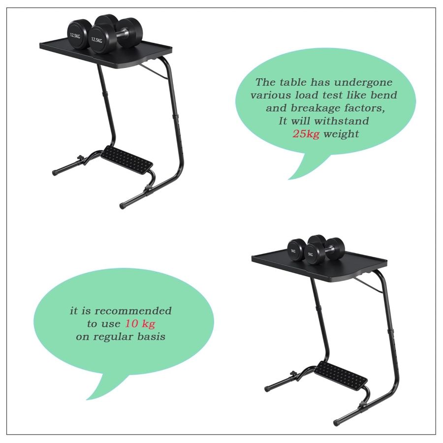 The Table Is Tested With 25 Kg Weight, recommended to use maximum 10 kg weight On Regular Basis.