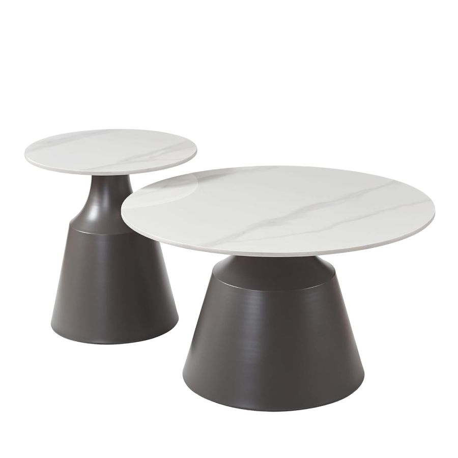 The Attic Bolla Coffee Tables Set of 2 Modern Nesting Design,Titanium & Cream