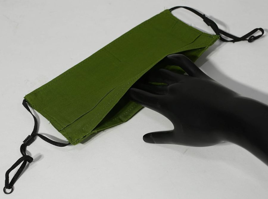 Pack of 3. Fine Cotton Face Masks with a pocket to insert a filter. (Filter not included). Nose bridge/wire/pin to prevent slipping. Designed for protection, comfort and breathability. Rectangular Pleated Style. Mask 1- Solid Purple Mask 2- Miltary Green Mask 3- Teal Green