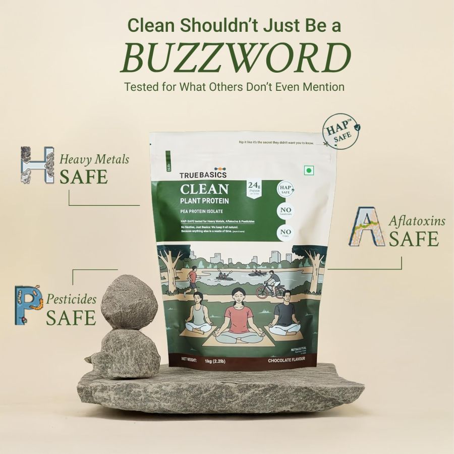 TrueBasics Clean Plant Protein Powder Pea Protein Isolate (Chocolate, 1kg) | 24g Protein per Scoop