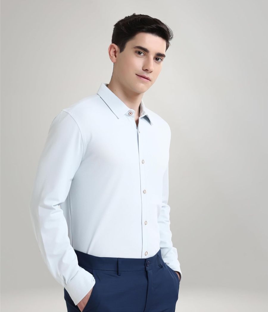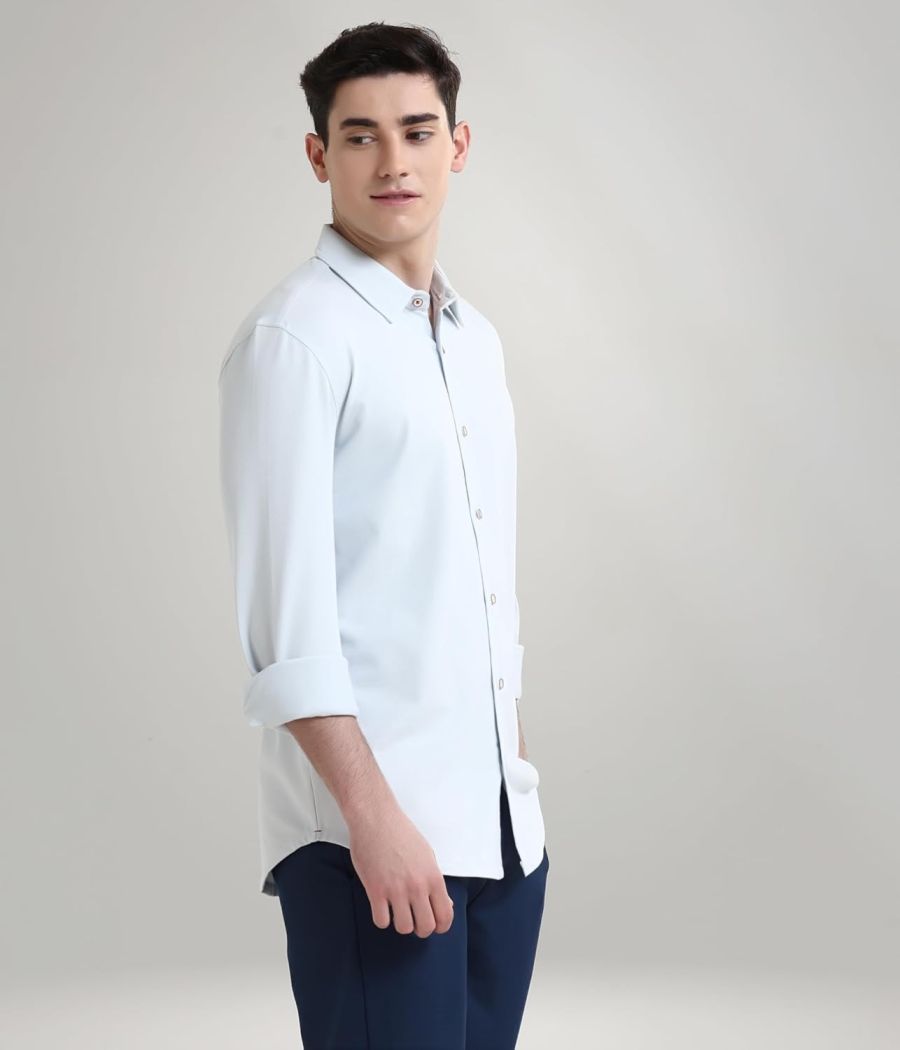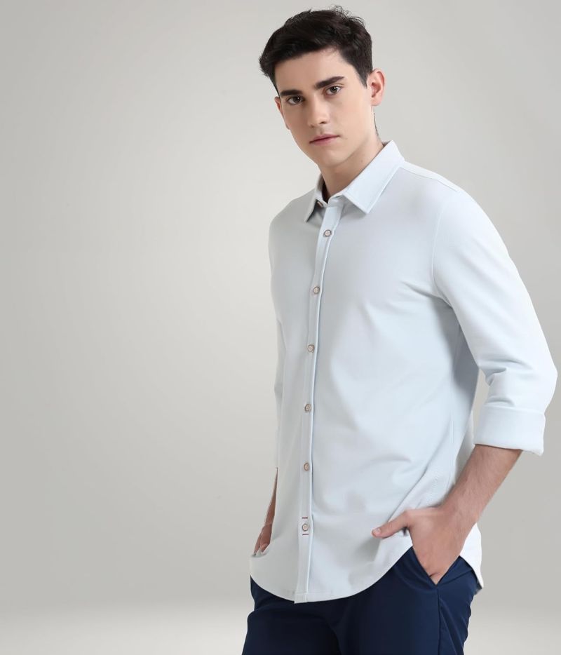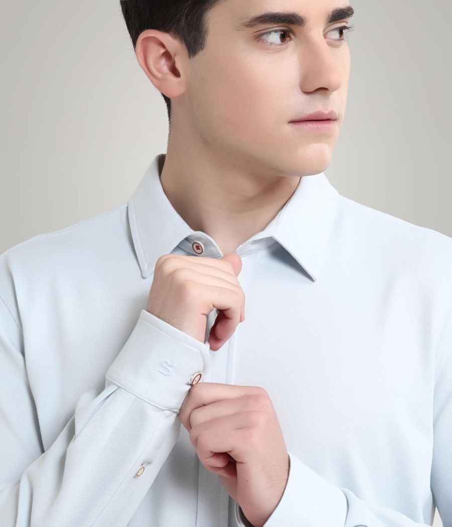 TURMS Water Repellent Men's Knitted Shirt | Anti Stain Anti Odor Cotton Blend | Solid Casual Full Sleeves