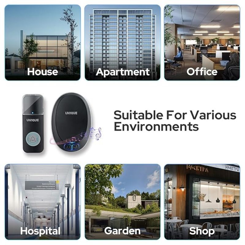 - [Suitable for Variable Environment ] The doorbell is suitable for use in various environments, such as home, office, store, school, hospital, and other spaces. It has multiple ringtones and an LED light that make it suitable for any setting