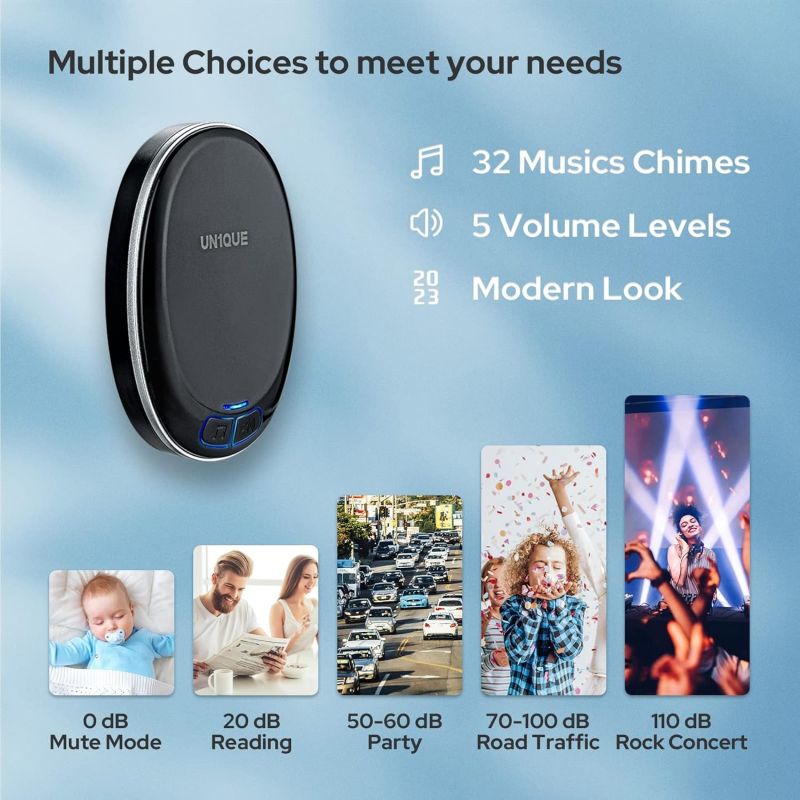 UN1QUE Wireless Door Bell for Home - Small Calling Bell for Office, 1000ft Long Range with 36 Chimes, 100dB Louder Volume, 4 Level Volume, LED Light, Info Board Design, IP44 Waterproof