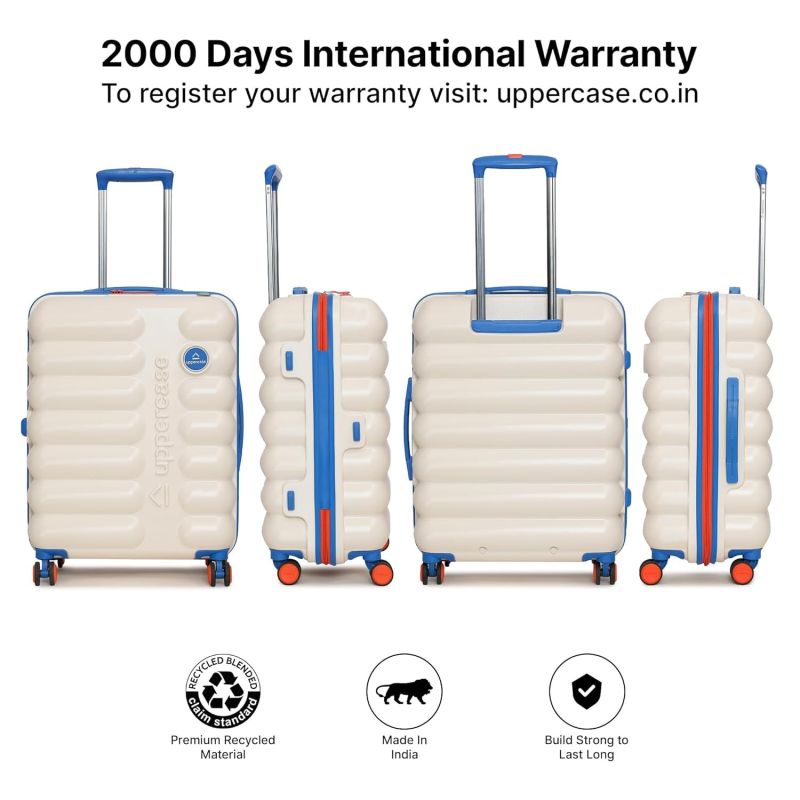 - 2000 DAYS OF INTERNATIONAL WARRANTY - India's pioneering uppercase Sustainable Hardsided Luggage, the ultimate blend of durability and eco-conscious design, featuring 2000 days International Warranty. This certified trolley bag sets the benchmark as the first of its kind in India (License CMPY-158596-RCS), making it an ideal suitcase for travel for both men & women.