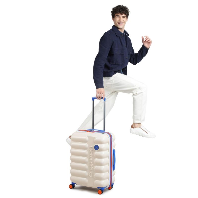 Uppercase Astro 56Cm (Small)| Cabin Trolley Bag| Sustainable Hardsided Spinner Luggage| Dual Wheel Suitcase| Flushed Tsa Lock & Anti-Theft Zippers| Suitcase For Men & Women|2000 Days Warranty (Beige)
