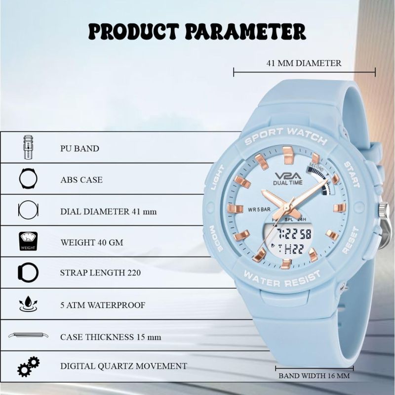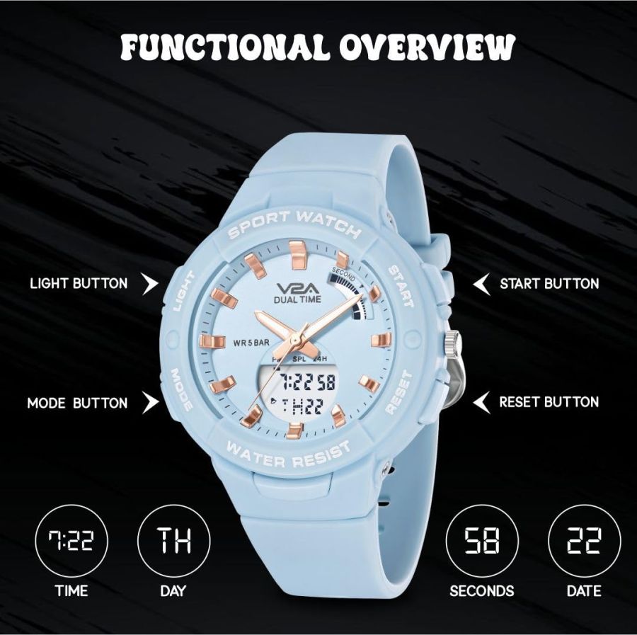 V2A Analog Digital Waterproof Fashion Sports Watch with Backlight Alarm Stopwatch for Women and Girls