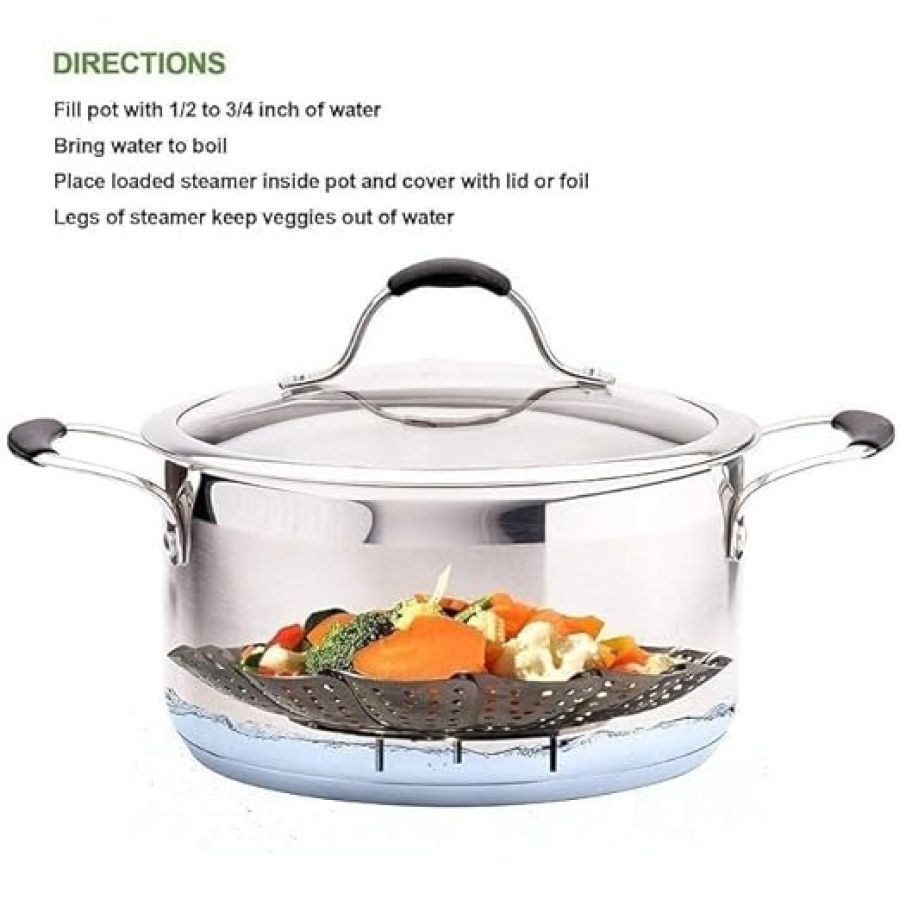 Vegetable Steamer Basket, Premium Stainless Steel Veggie Steamer Basket - Folding Expandable Steamers to Fits Various Size Pot (Round_6.5in)