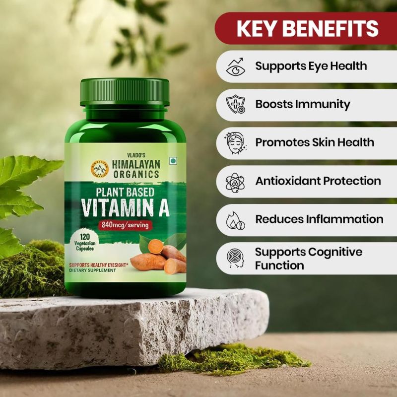 Vlado’s Himalayan Organics Plant-Based Vitamin A Supplement Supports Healthy Eye Sight | Natural Anti-Oxidant (120 Capsules)