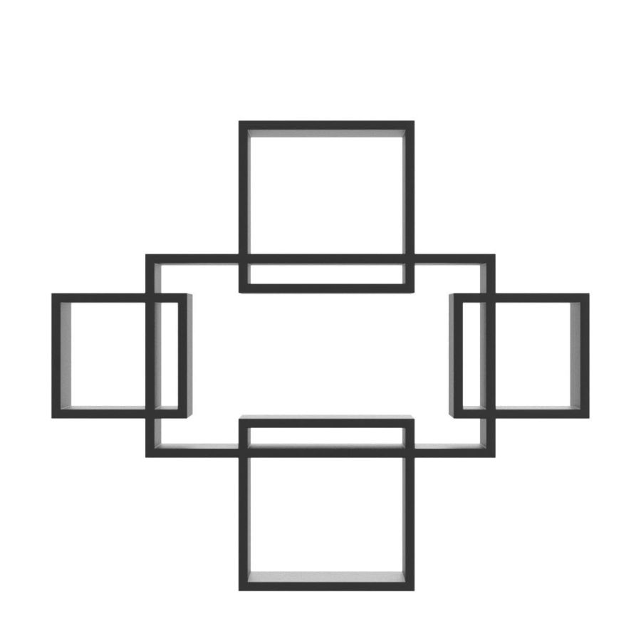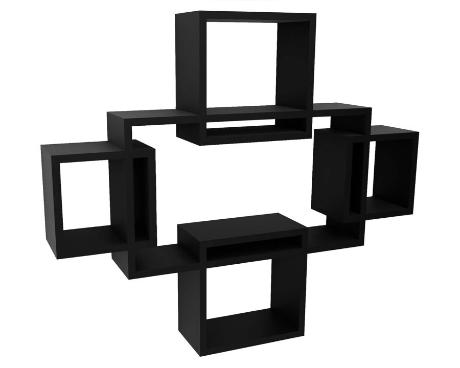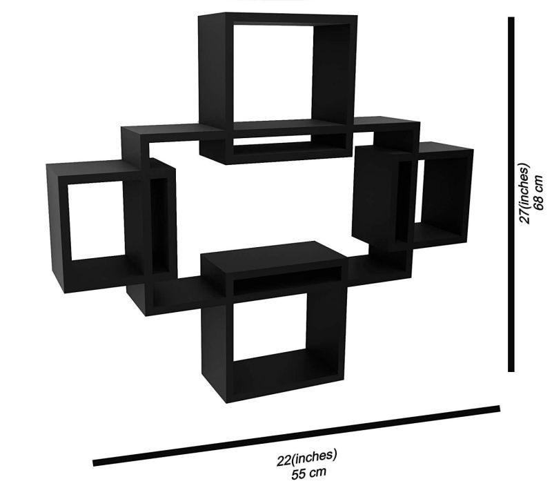 Vudy Exclusively Designed Wall Shelf with 5 Intersecting Decorative Living Room Shelves (Black, Glossy,Engineered Wood)