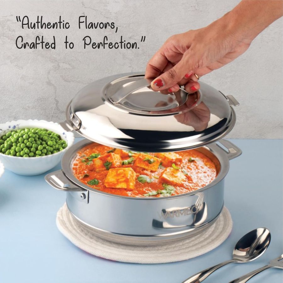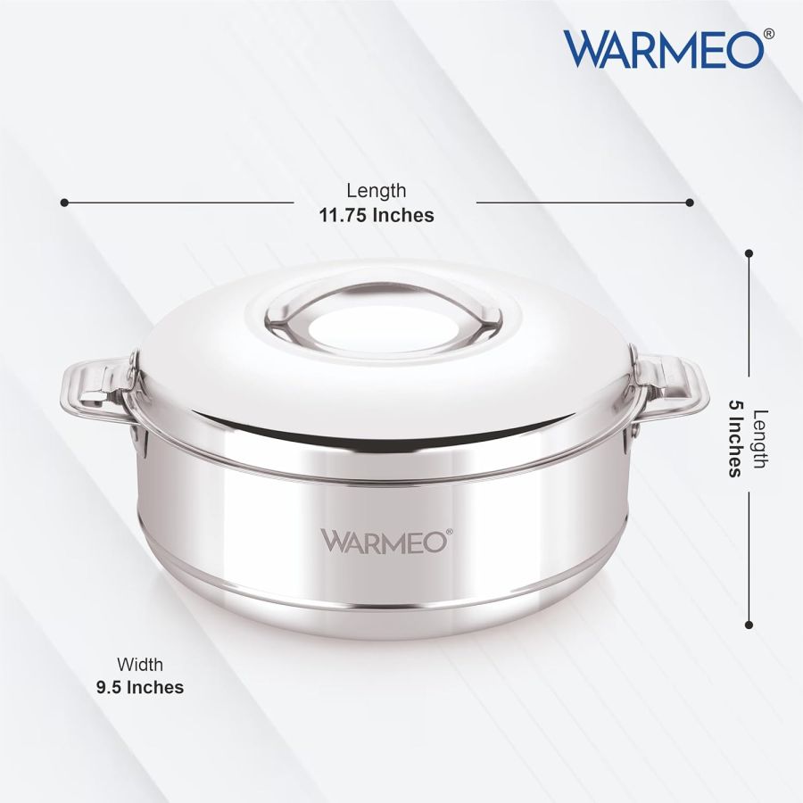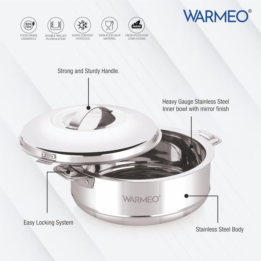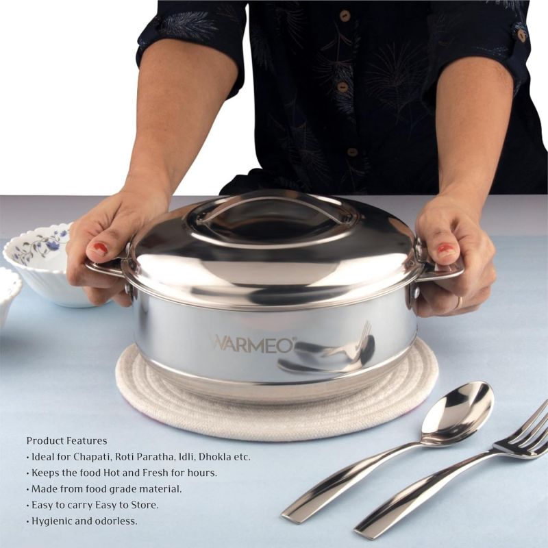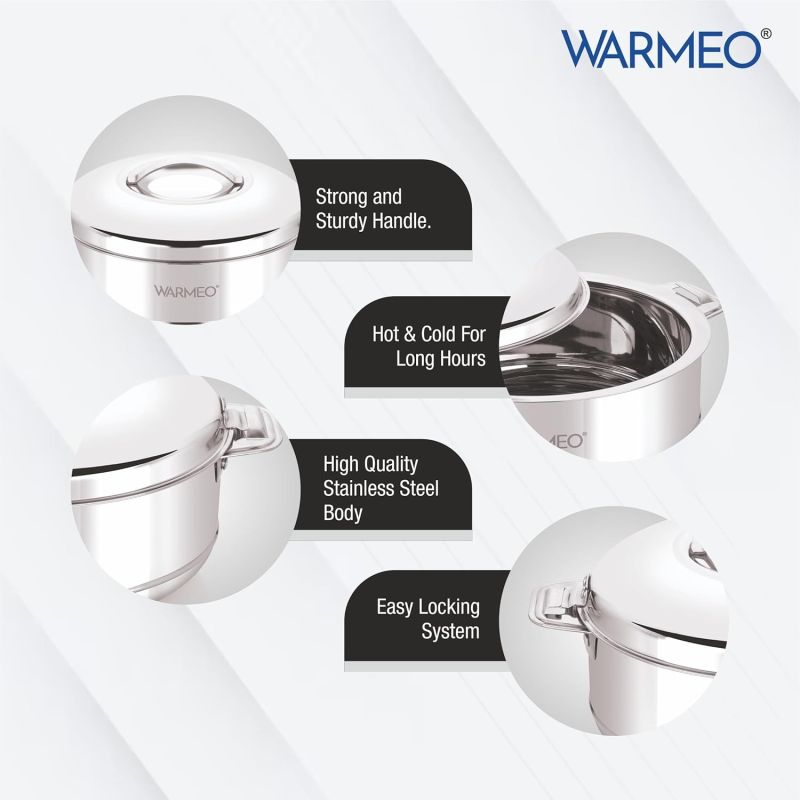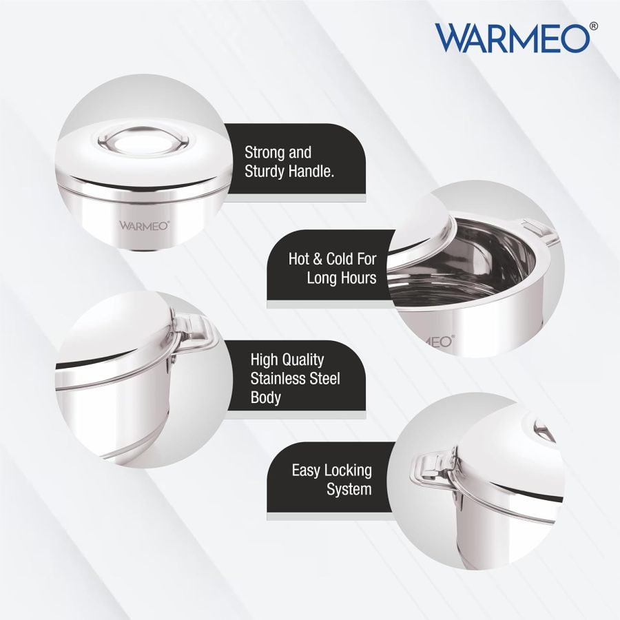 WARMEO Steam Insulated Stainless Steel Casseroles| Easy to Carry Hot Boxes for Kitchen | Hot Food, Easy to Store| Silver|1500ml