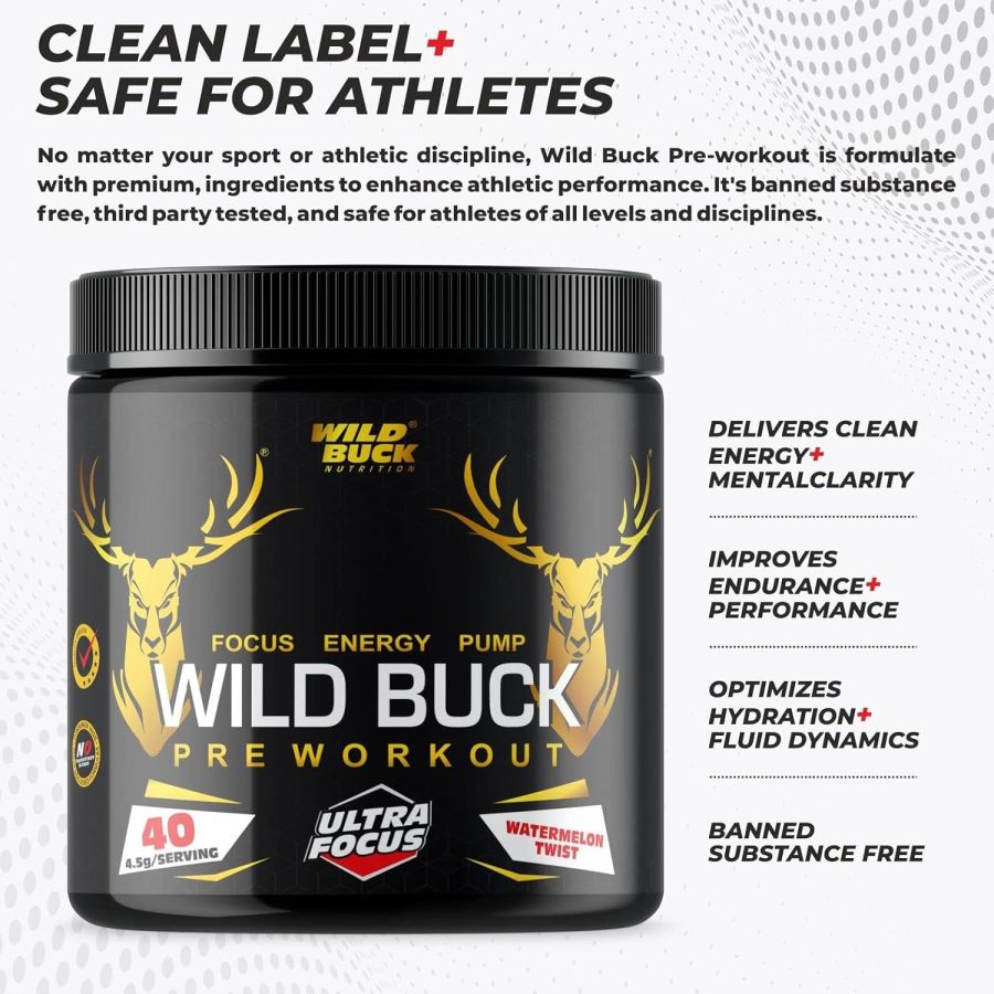SUITABILITY: The WILD BUCK Pre-workout is engineered for all Atheletes, whether you are a track star, bodybuilder, high-performance athletes, powerlifters, crossfitters, or action sports athelete Pre-workout will fuel your body