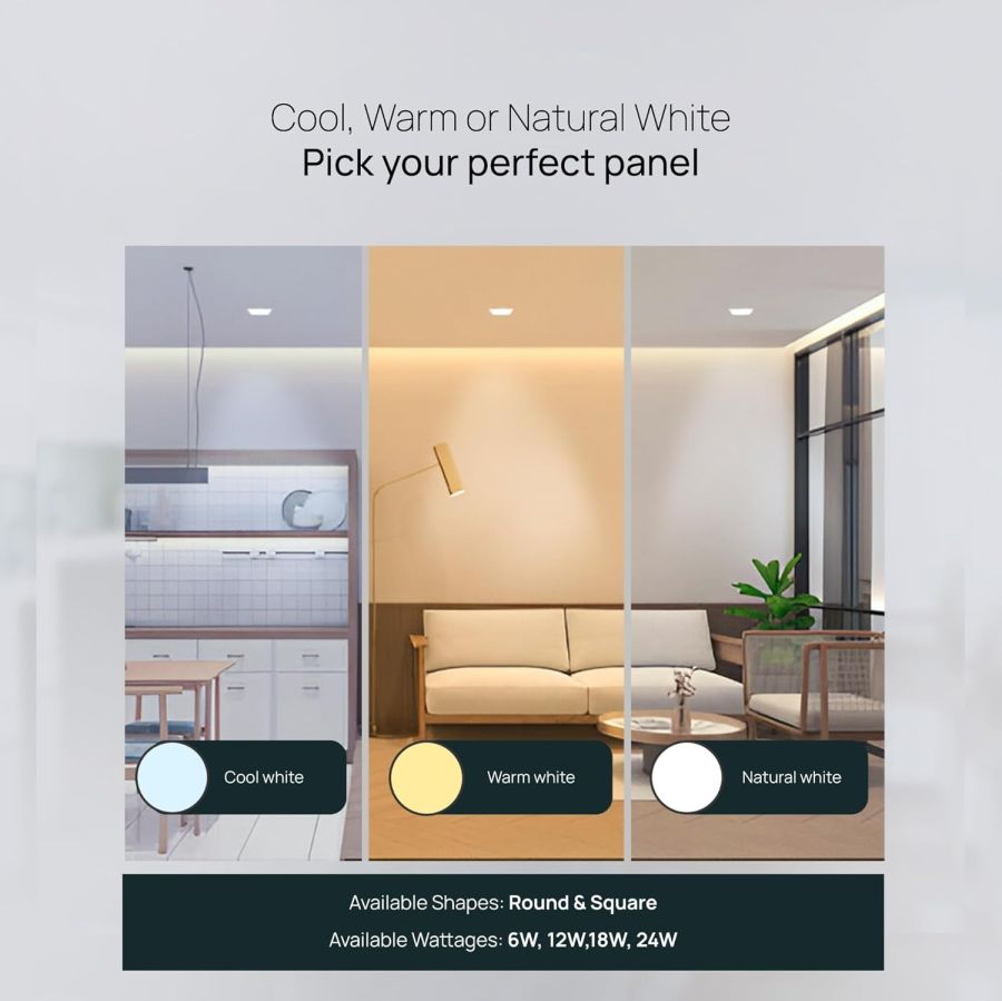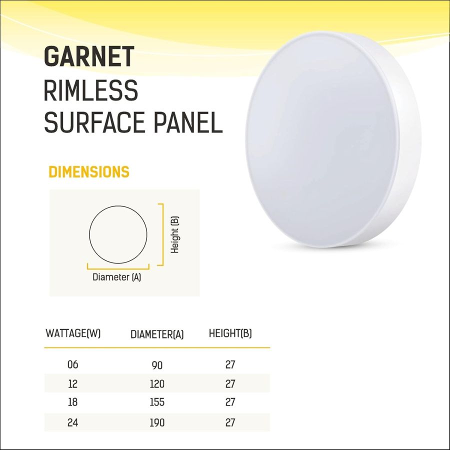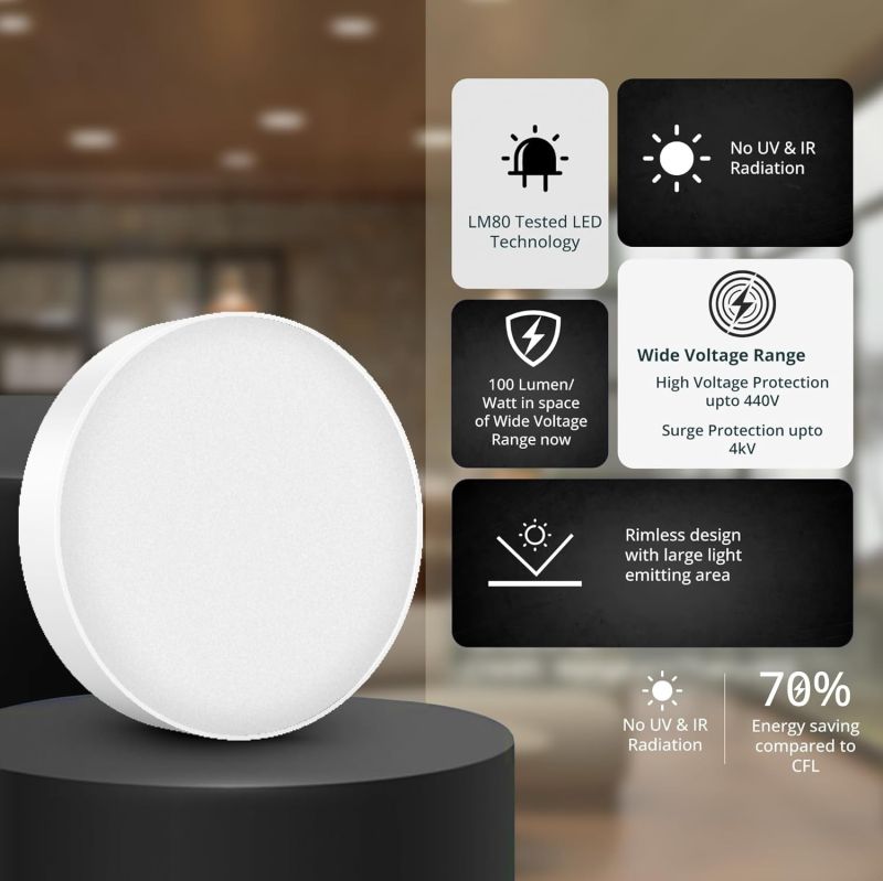 High Brightness & Energy Saving LED: The Rimless Surface Panel has a strong and high-quality light output of upto 100 Lumens/Watt. The LEDs are more efficient than conventional lights, saving upto 50% energy & electricity bills.