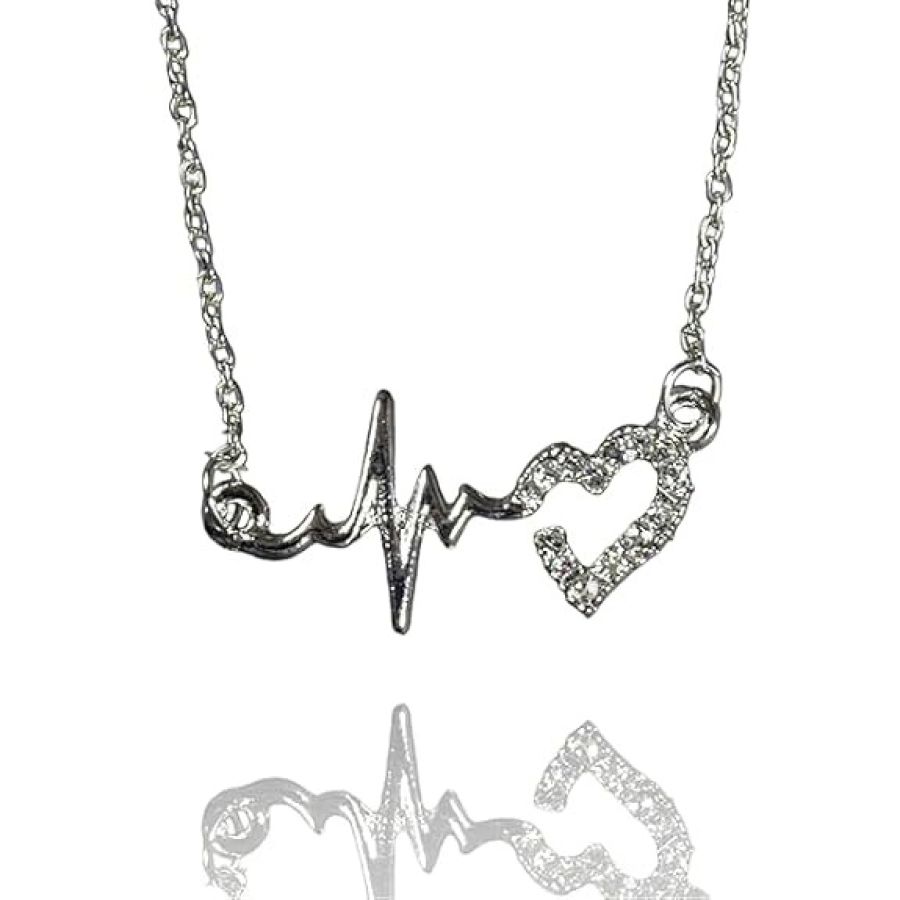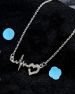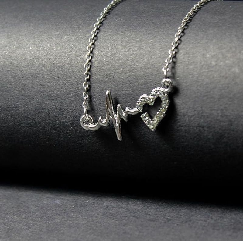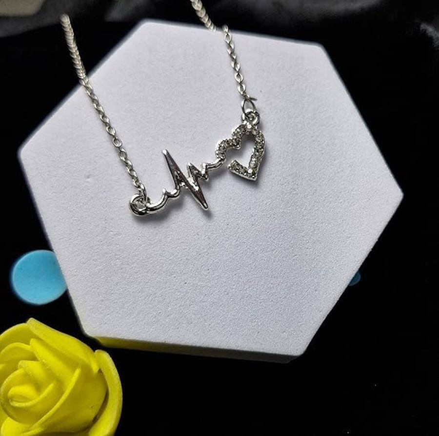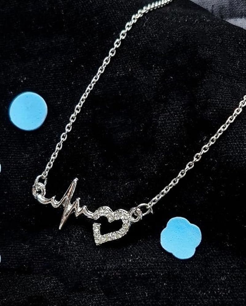 Women's Heart Beat Pendant Necklace, Gold-Plated Stone Studded Design with Chain, Fashion Jewellery Necklace for Girls/Womens